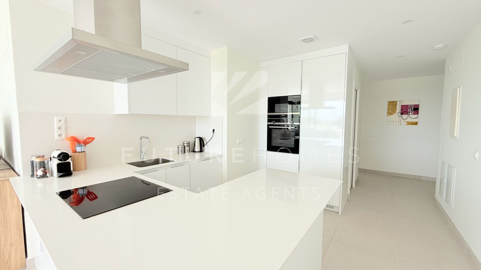 Modern spacious penthouse apartment only 3km from the beach and ten minutes drive to Estepona town centre. This super apartment was built in 2021 and offers everything you could wish for – with a contemporary design and south facing, it offers open views across the golf course and the coast beyond. The urbanization comprises only 54 low rise apartments with very large communal pool and fantastic gym as well as attractive plants and flowers. With easy access directly to the property from the private parking space by lift the apartment is suitable for all ages and abilities. The private terrace has sun for most of the day and as it is a top floor corner property, it offers maximum privacy. The two guest bedrooms share a large bathroom with a window, both have built in wardrobes and offer a nice view of the Sierra Bermeja mountain behind. The master bedroom has en-suite facilities (also with a window). The kitchen is open plan with plenty of cupboard and worktop space, with integrated washing machine, dishwasher etc it has everything you could wish for and practically new! This super penthouse has it all and ready to occupy (furniture is negotiable). Future Homes are direct selling agents and have keys in their office for easy viewing. Sure to sell quickly it has to be one of the most desirable properties on the market in Estepona! For more information and viewing please contact our office!