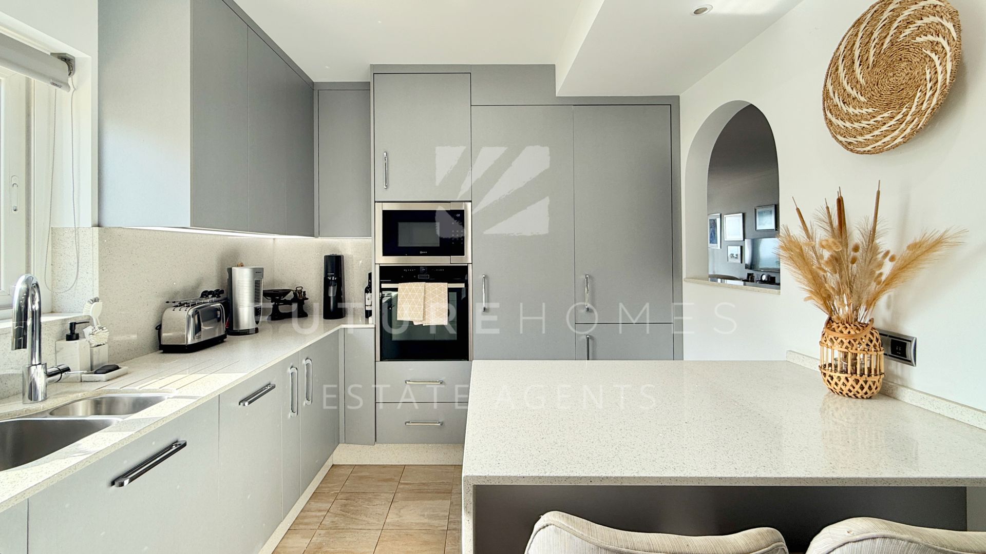This exceptional frontline beach apartment is located in the prestigious Marina Bay urbanisation, directly overlooking the popular Playa del Cristo. Offering panoramic sea views and an unbeatable location, this property truly ticks every box. The apartment features three large bedrooms, all with fitted wardrobes and sea views, two stylish bathrooms with walk-in showers, and a contemporary kitchen equipped with high-quality Neff and Bosch appliances. The spacious terrace is the jewel of the property, providing spectacular views of Gibraltar and Africa, where you can enjoy both sunrise and sunset. Included in the price is an underground parking space and a private storeroom. Marina Bay is a secure, gated community offering two swimming pools and direct access to Playa del Cristo. Estepona Marina is just a short stroll away, with the coastal cycle path and bus stop conveniently located at your doorstep. This is one of the best-located apartments in Estepona and represents an ideal choice as a permanent residence, holiday retreat, or investment opportunity. Sold unfurnished. Contact Future Homes today for more information or to arrange a viewing.