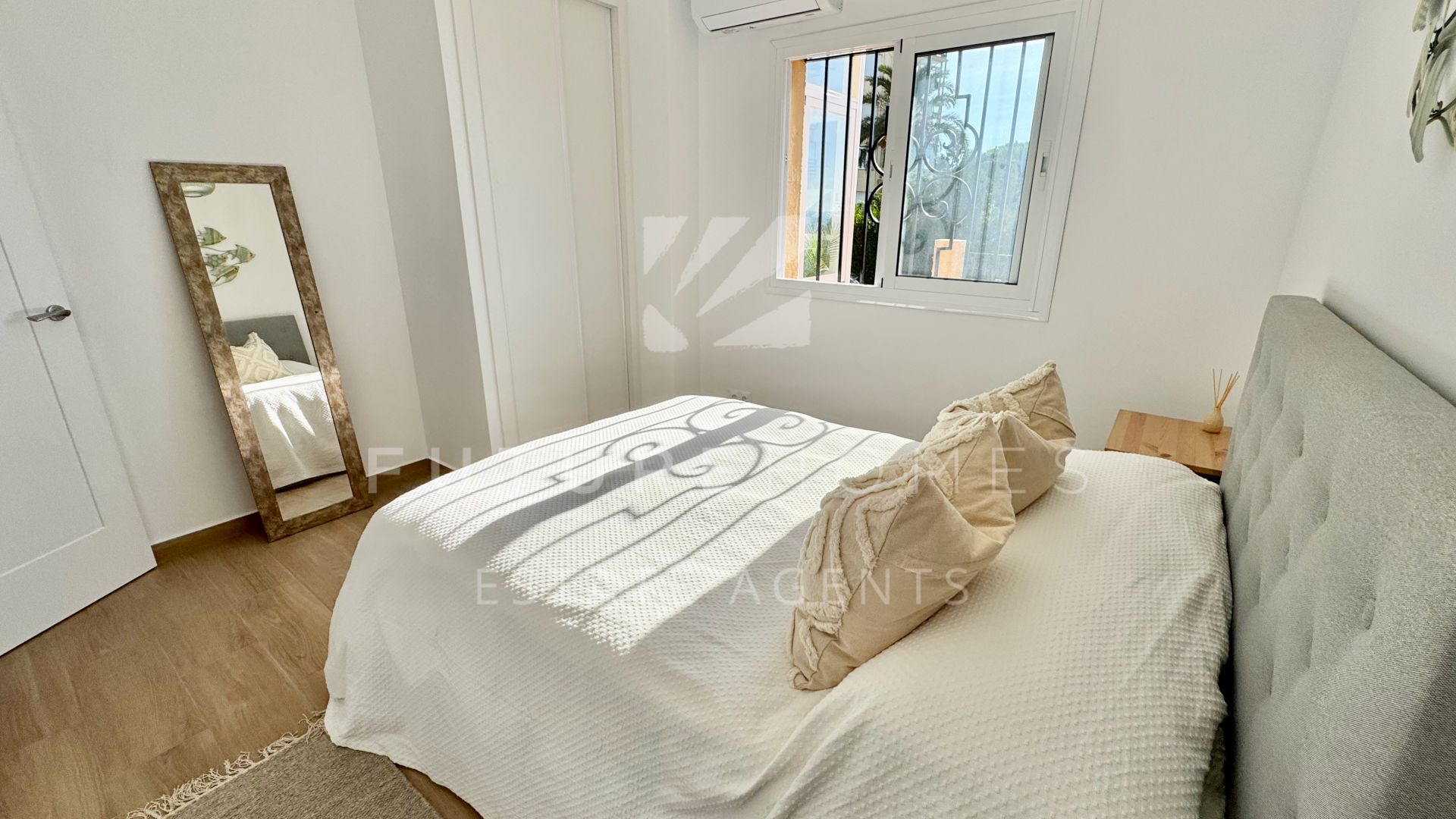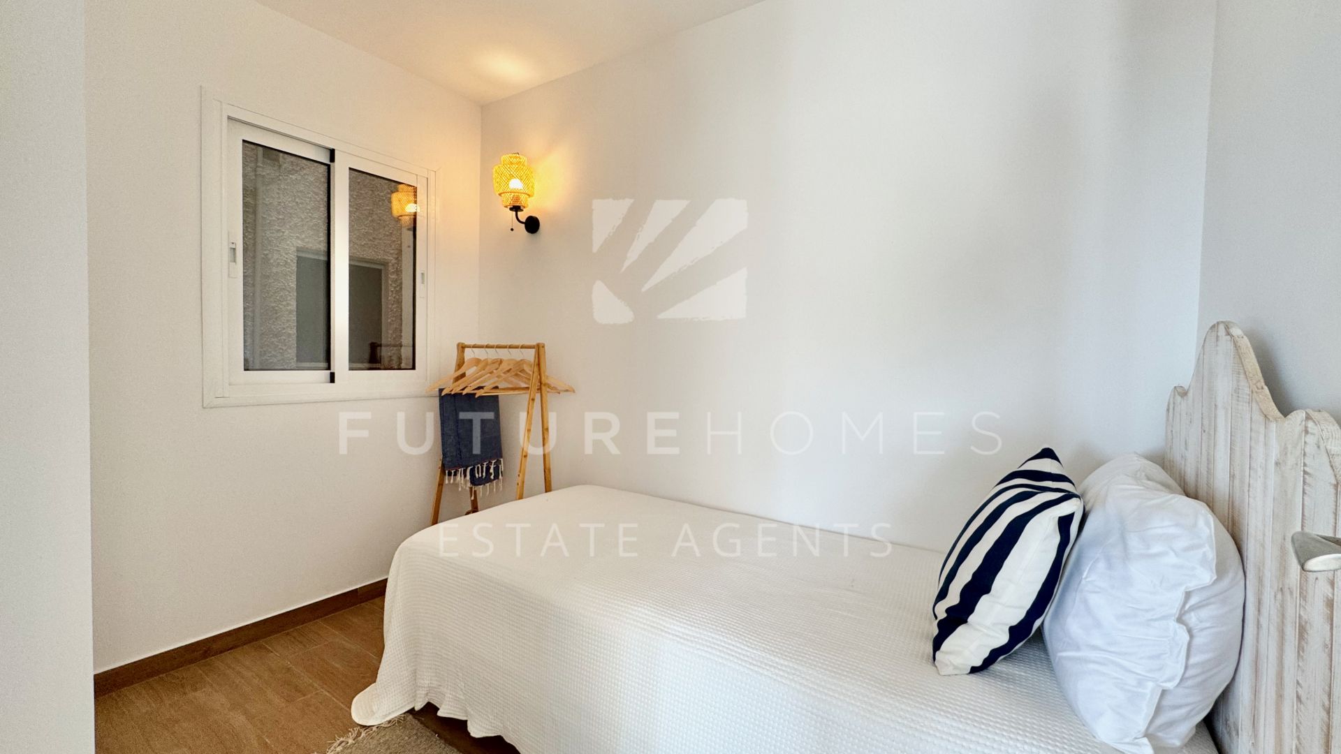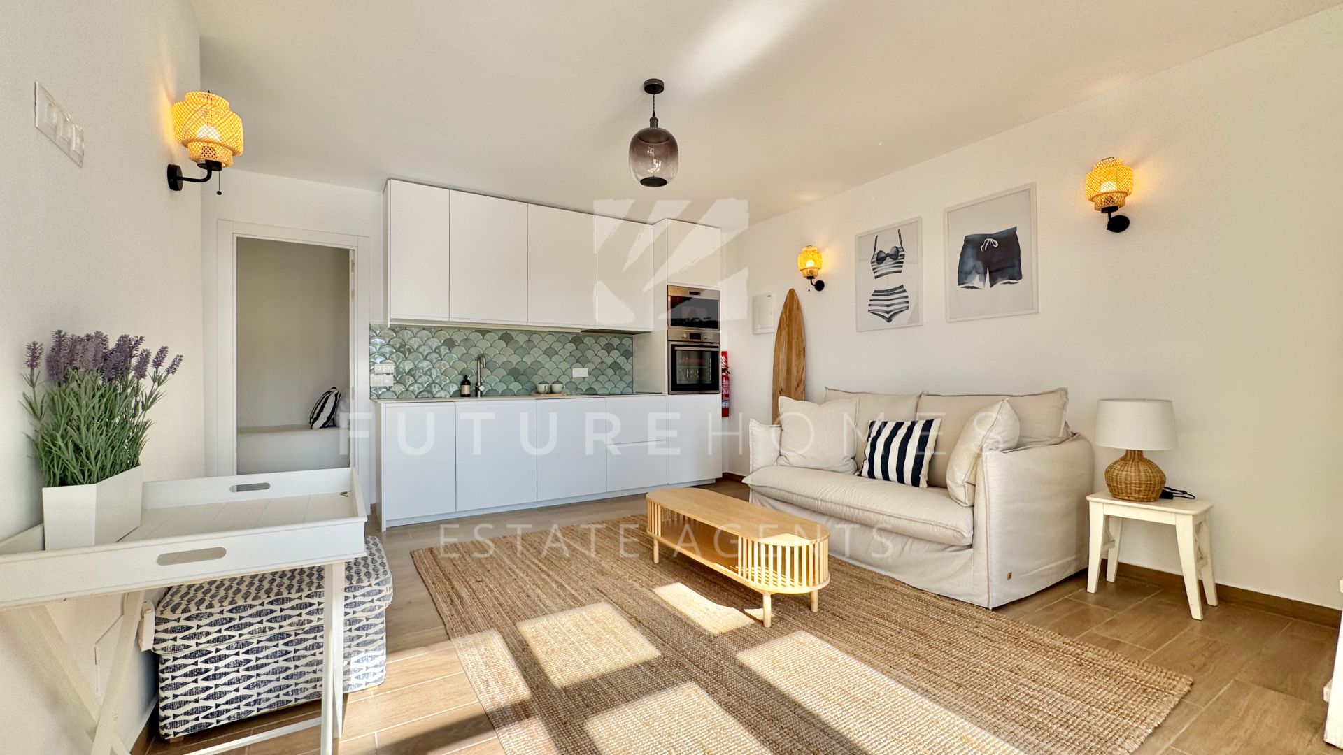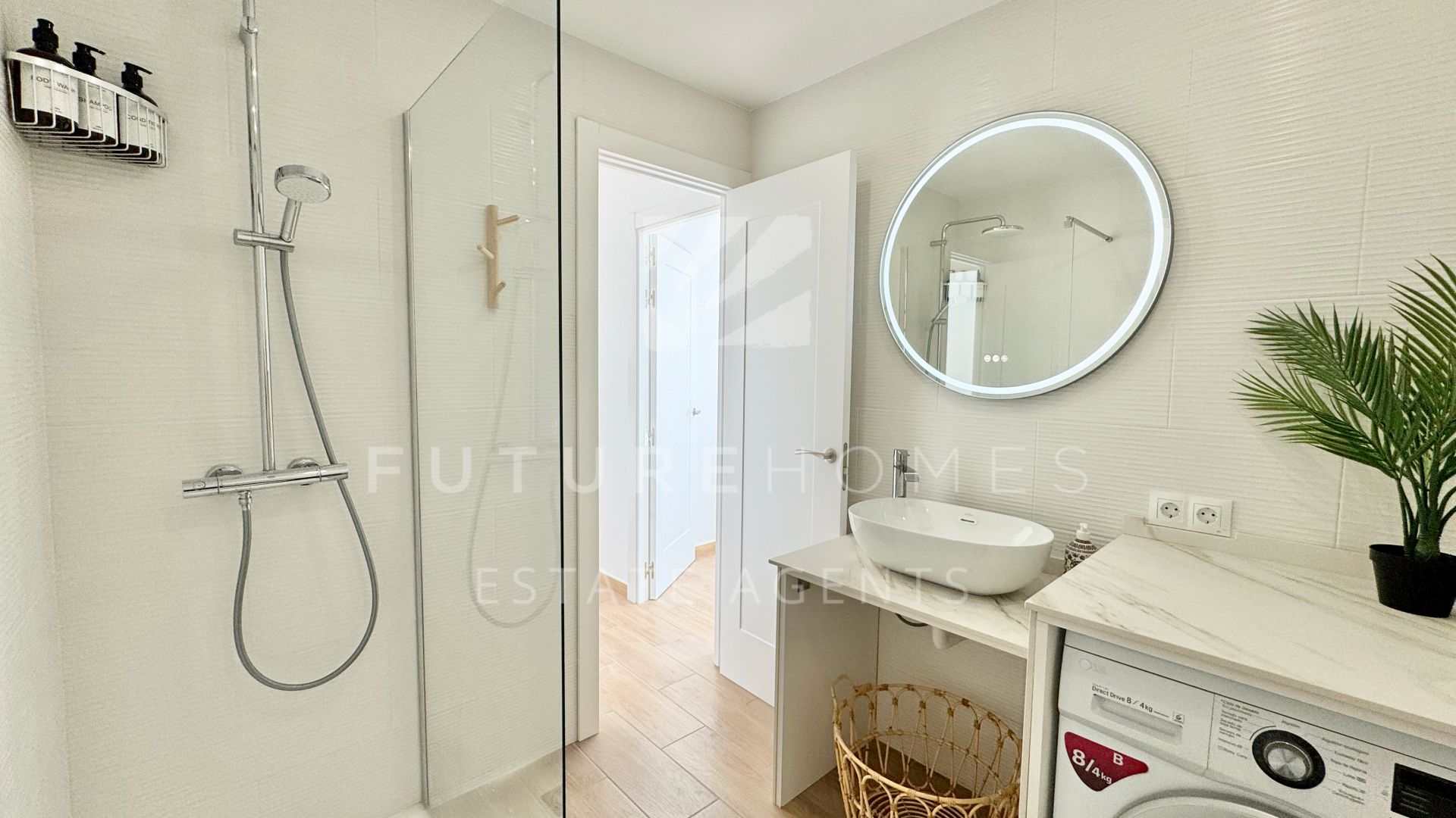 Future Homes is proud to introduce this immaculate ground floor apartment located within a sought-after community next to Playa del Cristo beach and Estepona marina. As you enter the property, there is a lovely sunny private terrace with wonderful sea views, leading into the main living area which is very bright and spacious indeed. The kitchen is open plan and you can enjoy great sea views while sitting on the sofa! The main bedroom is a great size and also has sea views and a fitted wardrobe. There is a smaller second bedroom which is ideal for guests or even a home office. The bathroom has a walk-in shower and a stone vanity with an integrated washer / dryer. This property has been FULLY renovated to a high standard, everything you see is brand new including electrics, plumbing, windows, doors and air conditioning. The kitchen is complete with appliances, integrated dishwasher, microwave and oven. The community has off-street parking and a swimming pool. Local is IDEAL, within a stone’s throw from El Cristo beach and Estepona port. You can cycle directly into the centre of town and there is a bus stop on your doorstep. A unique opportunity to purchase this wonderful home / investment. Contact us to arrange a viewing!!