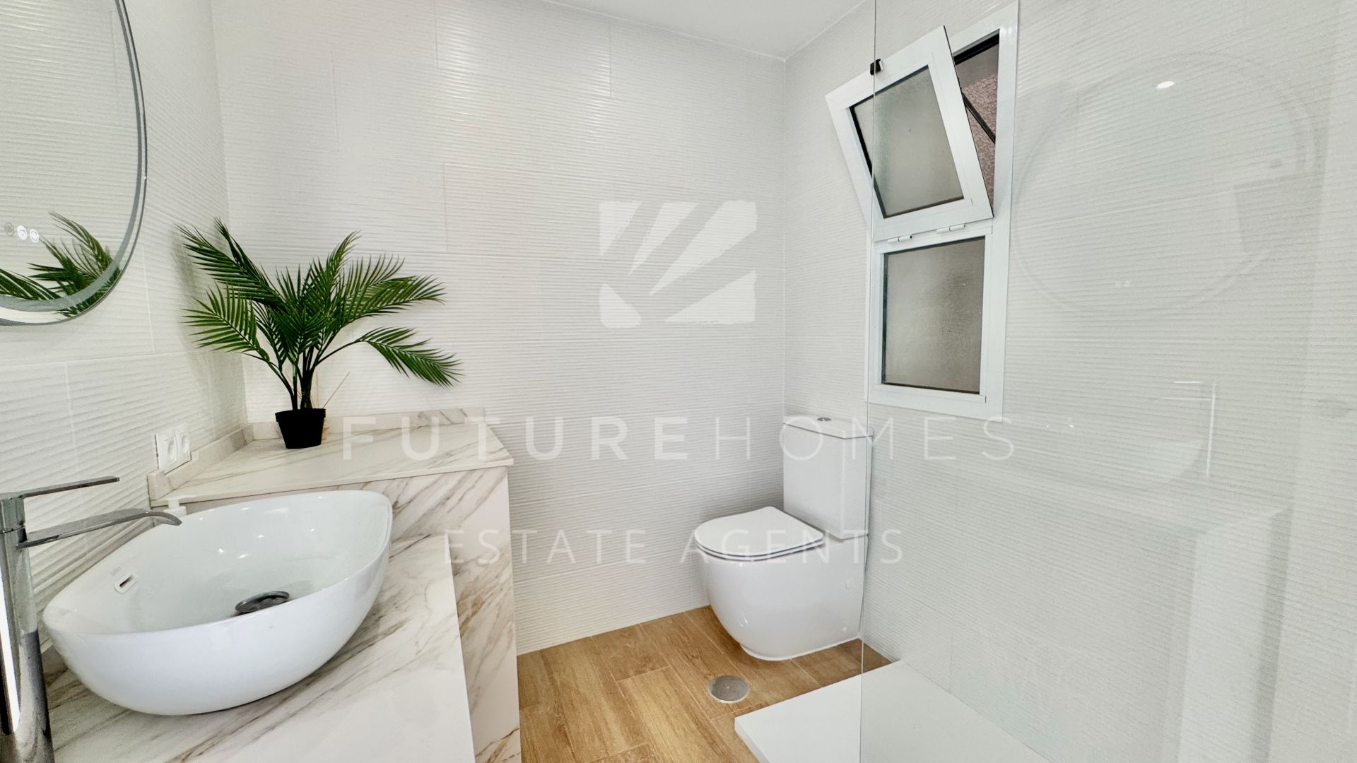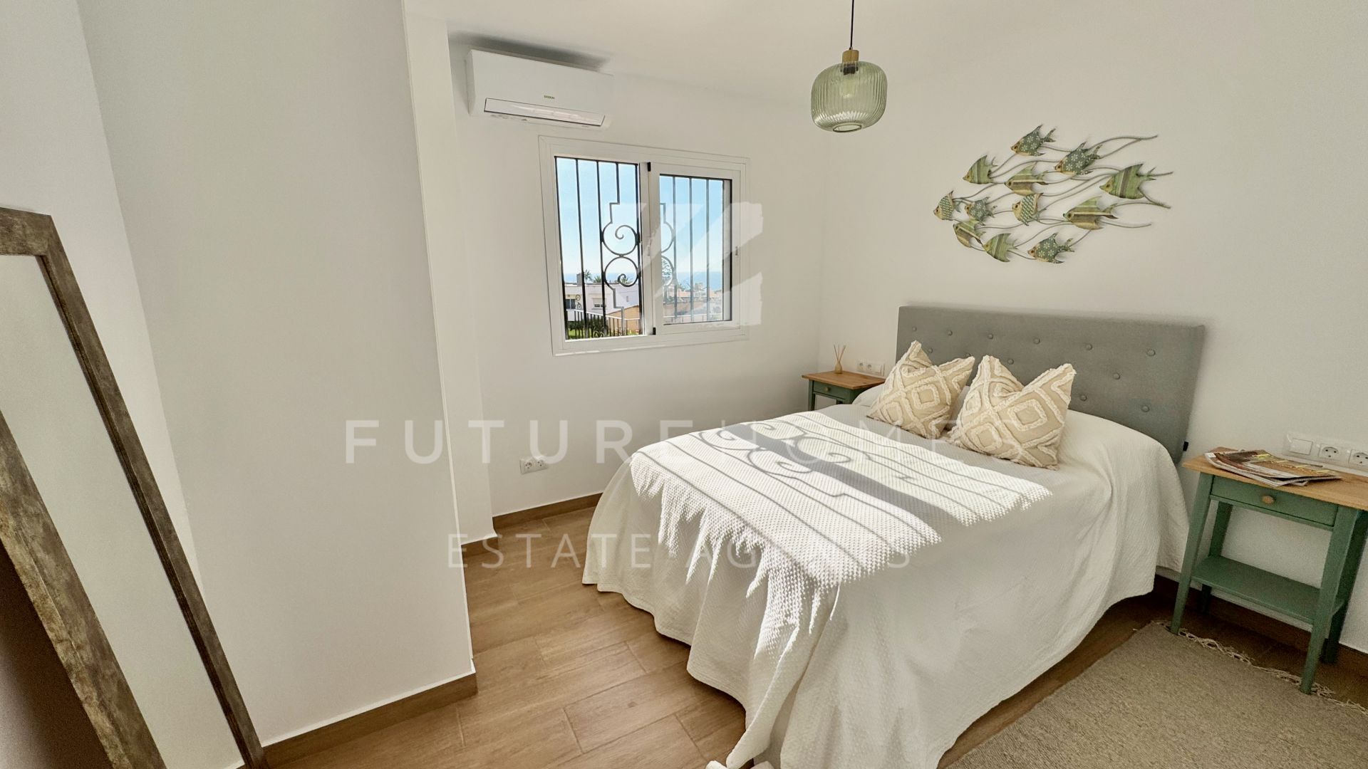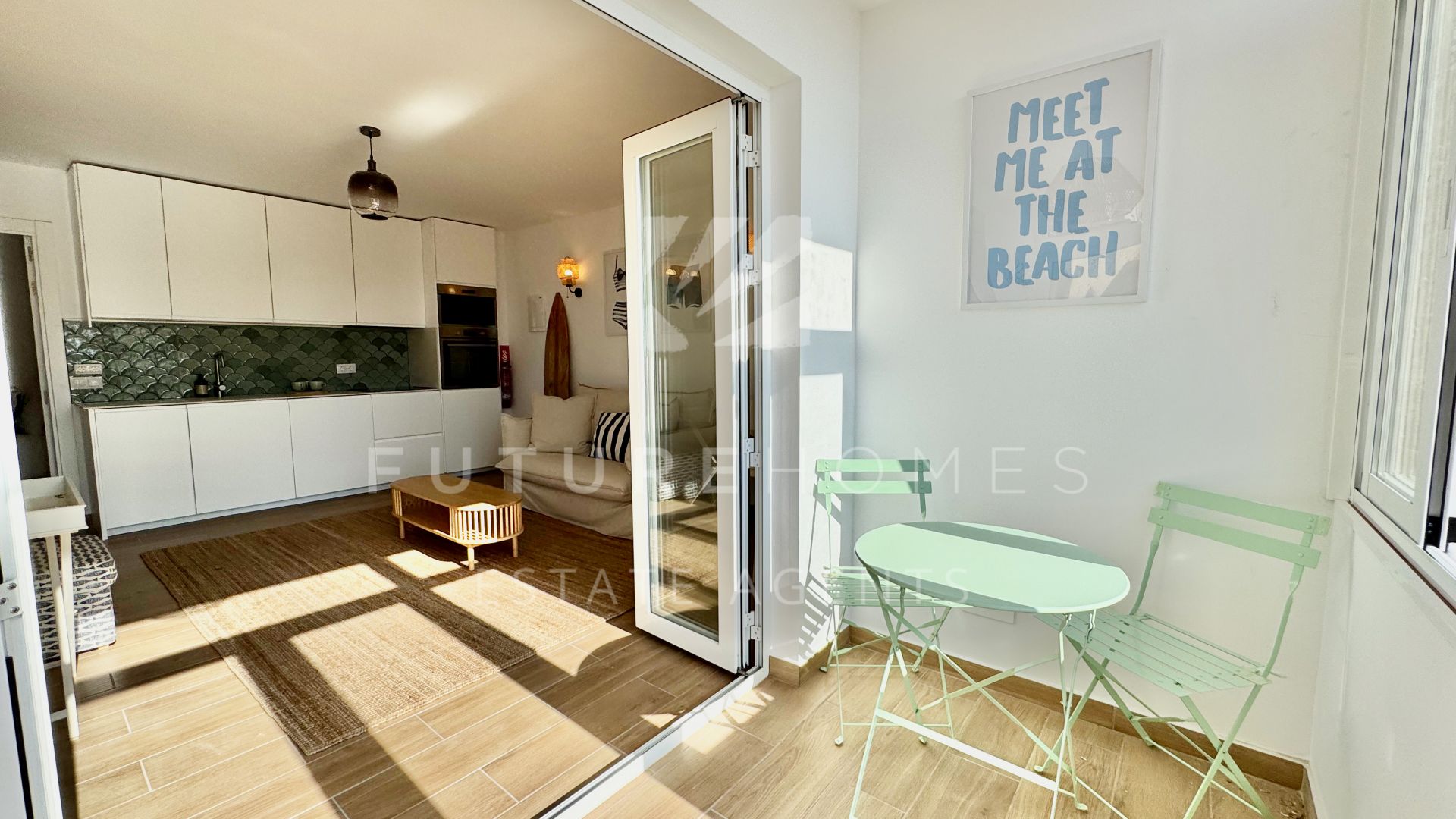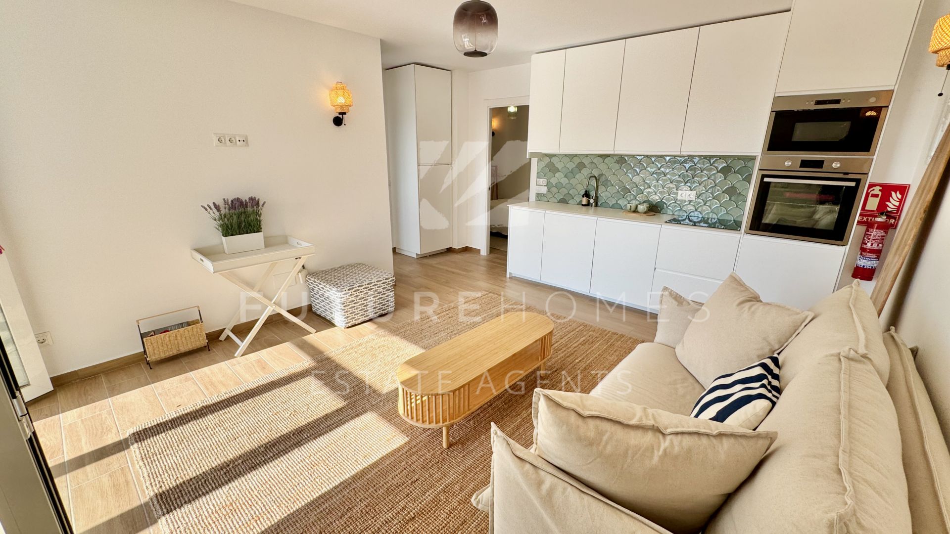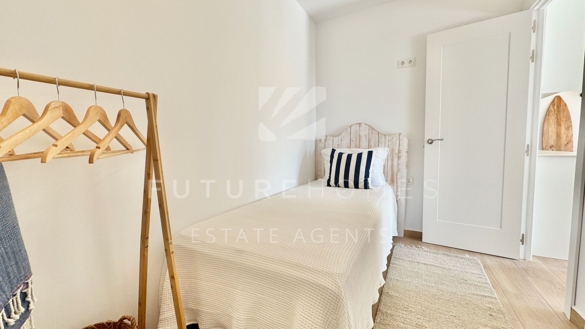 Future Homes is proud to introduce this immaculate ground floor apartment located within a sought-after community next to Playa del Cristo beach and Estepona marina. As you enter the property, there is a lovely sunny private terrace with wonderful sea views, leading into the main living area which is very bright and spacious indeed. The kitchen is open plan and you can enjoy great sea views while sitting on the sofa! The main bedroom is a great size and also has sea views and a fitted wardrobe. There is a smaller second bedroom which is ideal for guests or even a home office. The bathroom has a walk-in shower and a stone vanity with an integrated washer / dryer. This property has been FULLY renovated to a high standard, everything you see is brand new including electrics, plumbing, windows, doors and air conditioning. The kitchen is complete with appliances, integrated dishwasher, microwave and oven. The community has off-street parking and a swimming pool. Local is IDEAL, within a stone’s throw from El Cristo beach and Estepona port. You can cycle directly into the centre of town and there is a bus stop on your doorstep. A unique opportunity to purchase this wonderful home / investment. Contact us to arrange a viewing!!
