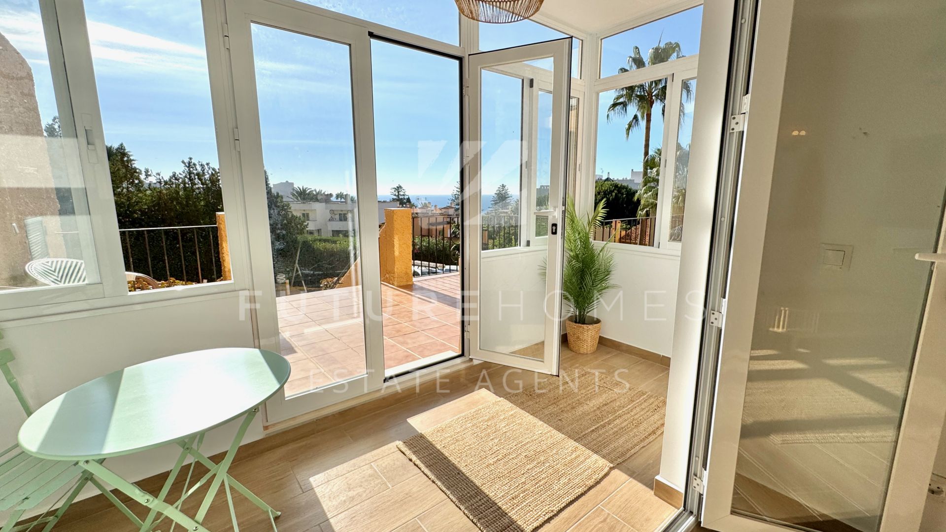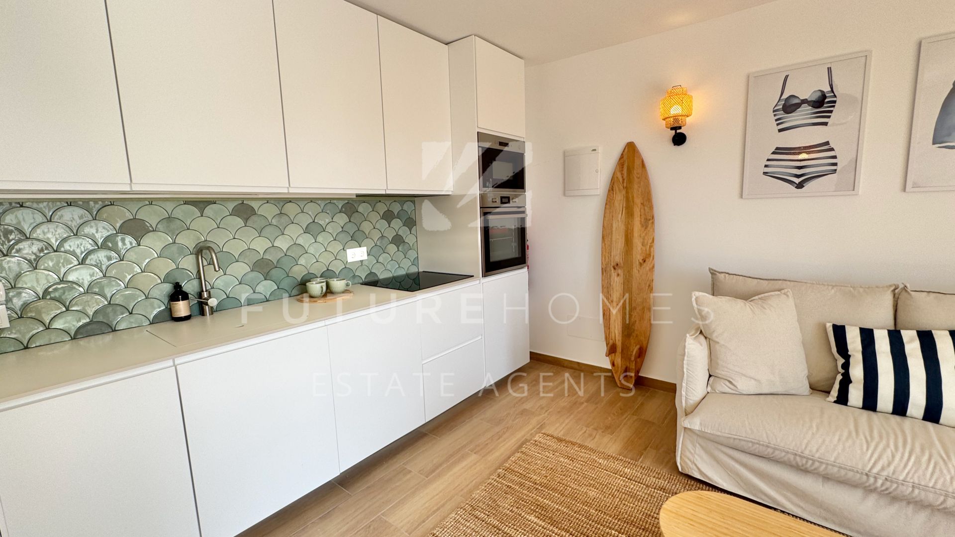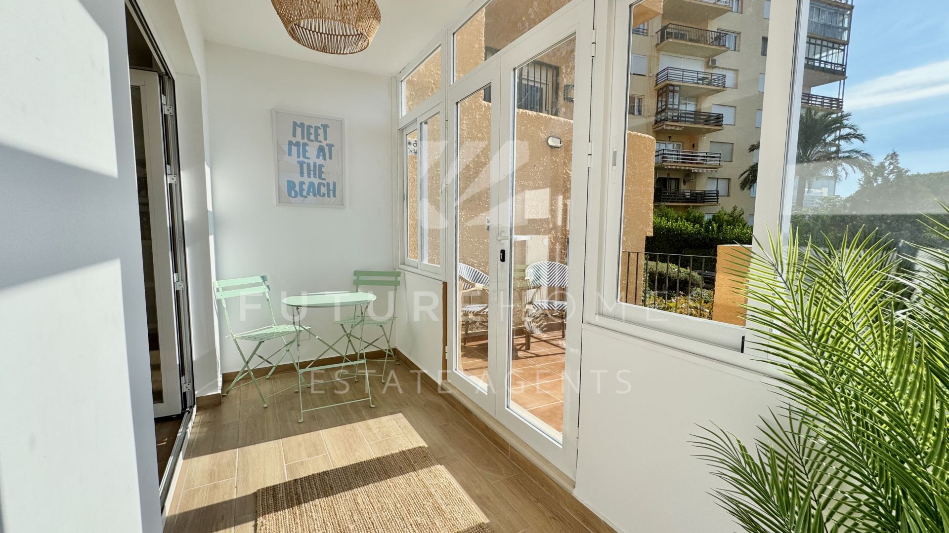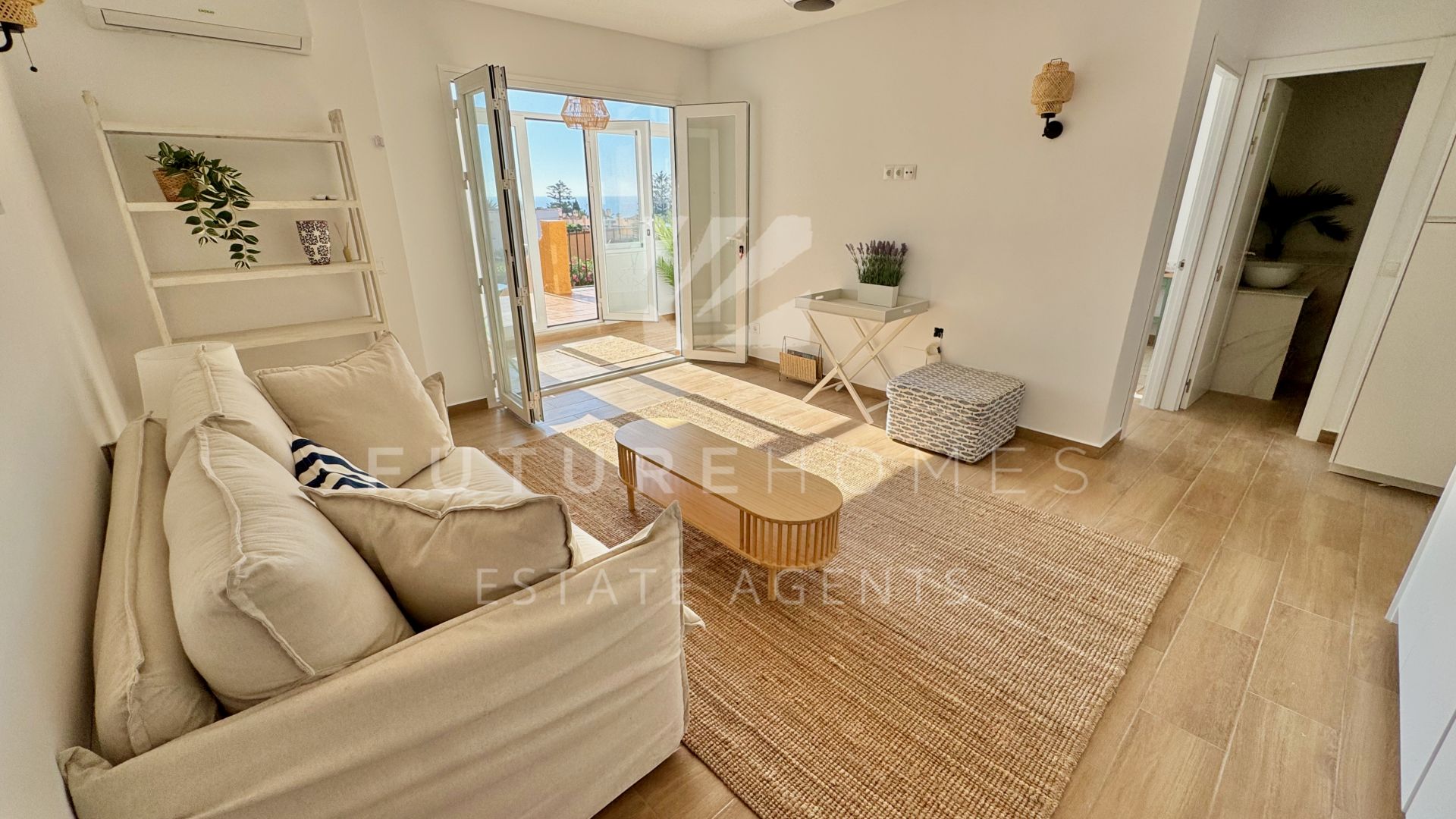 Future Homes is proud to introduce this immaculate ground floor apartment located within a sought-after community next to Playa del Cristo beach and Estepona marina. As you enter the property, there is a lovely sunny private terrace with wonderful sea views, leading into the main living area which is very bright and spacious indeed. The kitchen is open plan and you can enjoy great sea views while sitting on the sofa! The main bedroom is a great size and also has sea views and a fitted wardrobe. There is a smaller second bedroom which is ideal for guests or even a home office. The bathroom has a walk-in shower and a stone vanity with an integrated washer / dryer. This property has been FULLY renovated to a high standard, everything you see is brand new including electrics, plumbing, windows, doors and air conditioning. The kitchen is complete with appliances, integrated dishwasher, microwave and oven. The community has off-street parking and a swimming pool. Local is IDEAL, within a stone’s throw from El Cristo beach and Estepona port. You can cycle directly into the centre of town and there is a bus stop on your doorstep. A unique opportunity to purchase this wonderful home / investment. Contact us to arrange a viewing!!