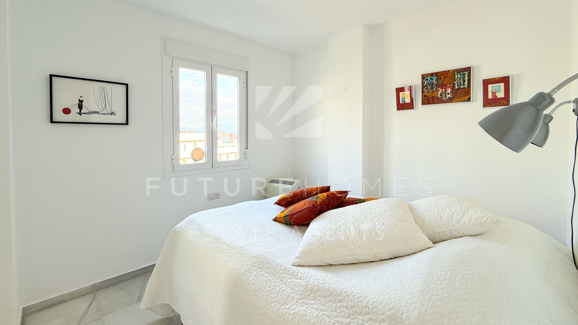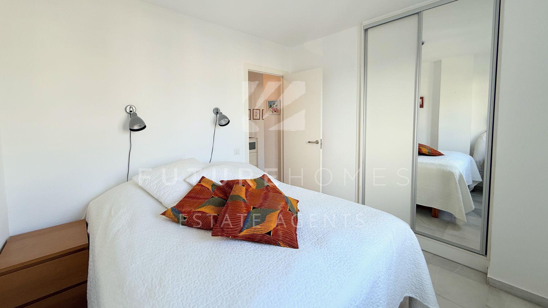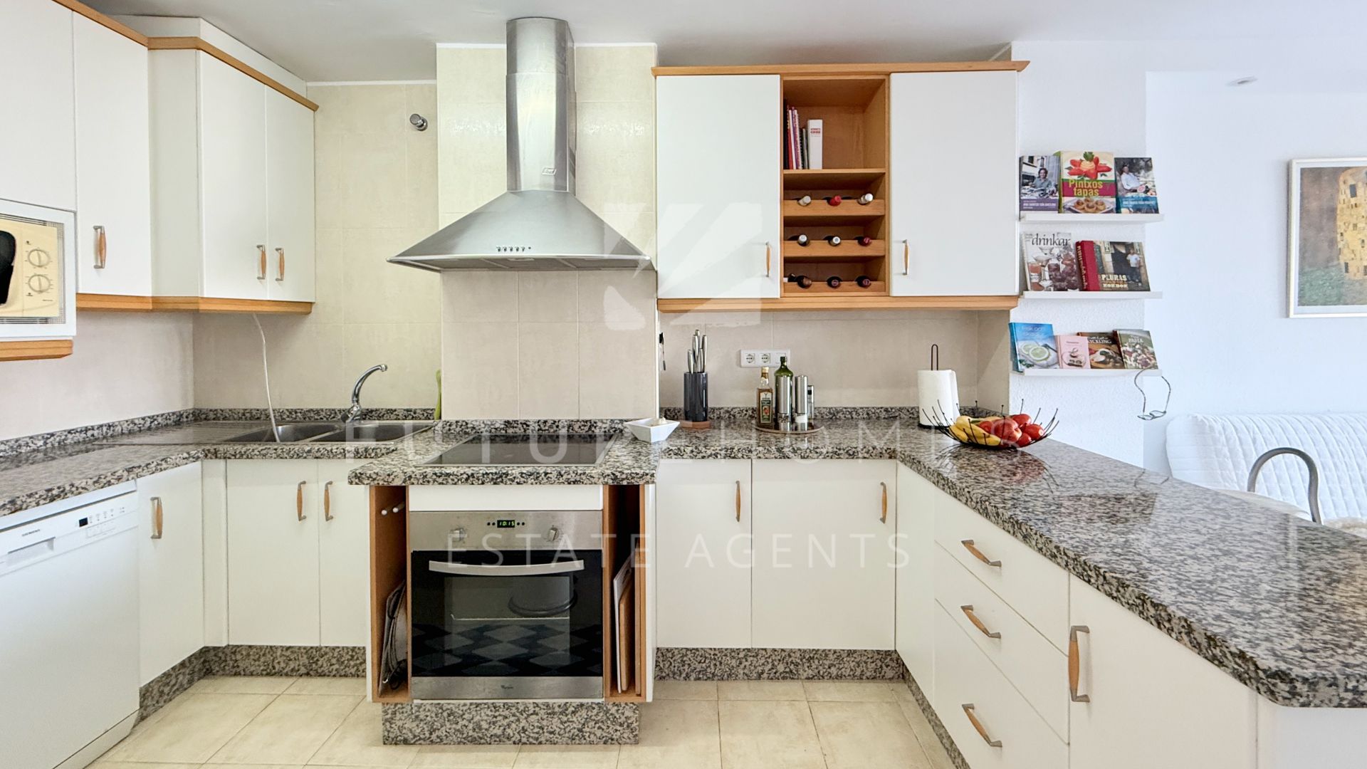 This well appointed and spacious two bedroom apartment is located in the highly sought-after neighbourhood of Seghers, at just a 10 minute walk from Estepona marina and the beautiful Cristo beach. The location is ideal for peaceful living with all amenities on your doorstep. The apartment, on the second floor, is comprised of two double bedrooms with fitted wardrobes and open views across Estepona town and the sea. There is a modern bathroom with walk-in shower and a separate WC for guests. One of the best features this property has to offer is the very large open plan living area, with a fully fitted kitchen and south facing views of the coast and of the communal swimming pool and gardens. The gated urbanisation has off street secure parking and very well maintained gardens and swimming pool. The property is sold furnished.