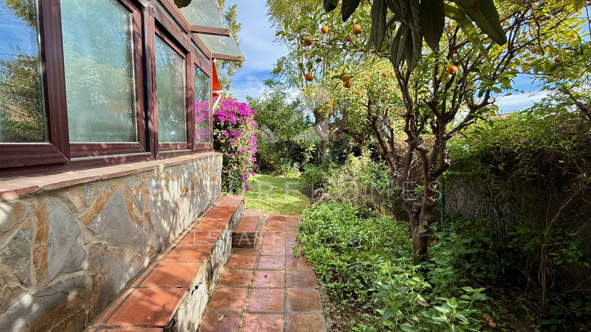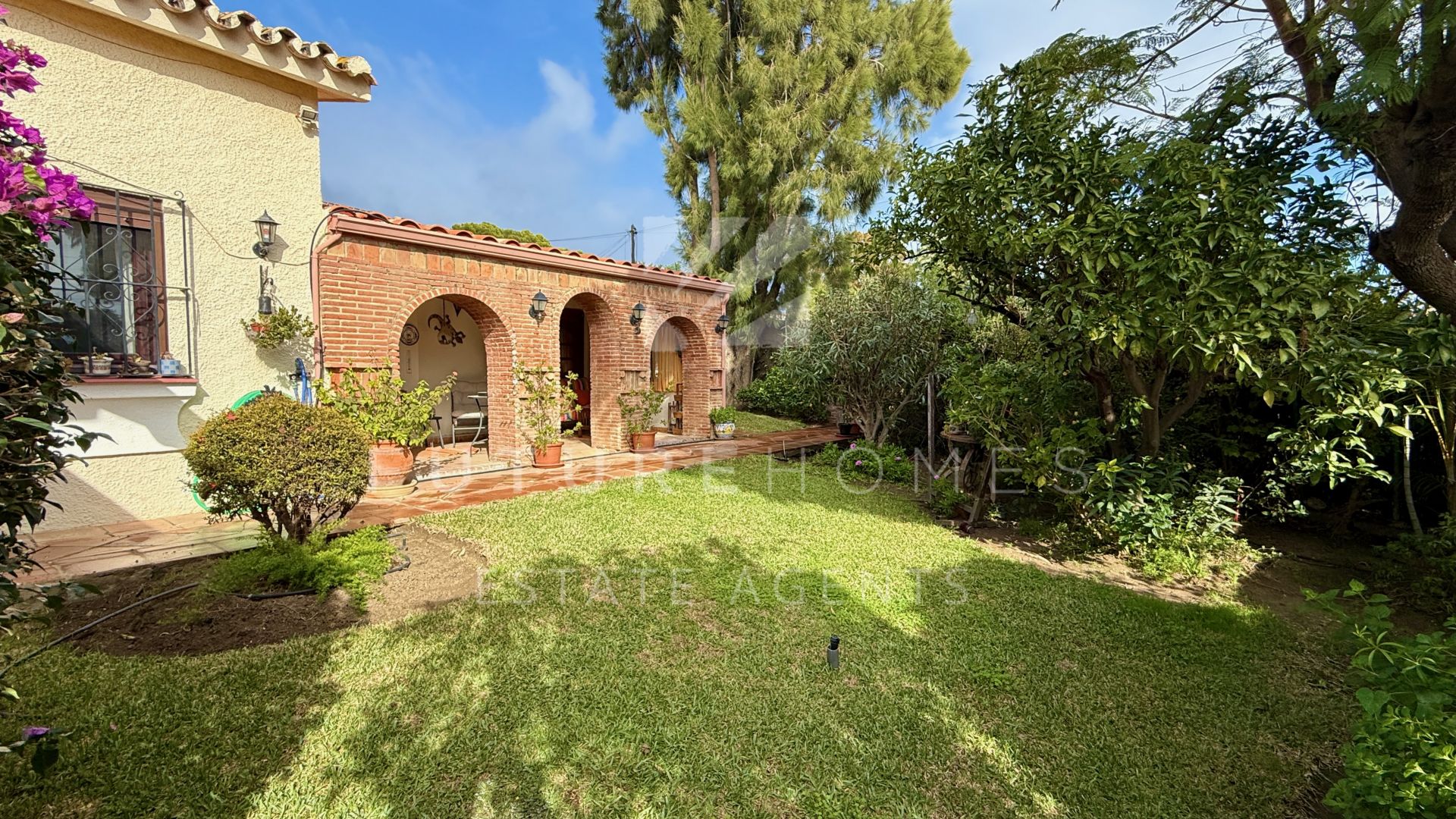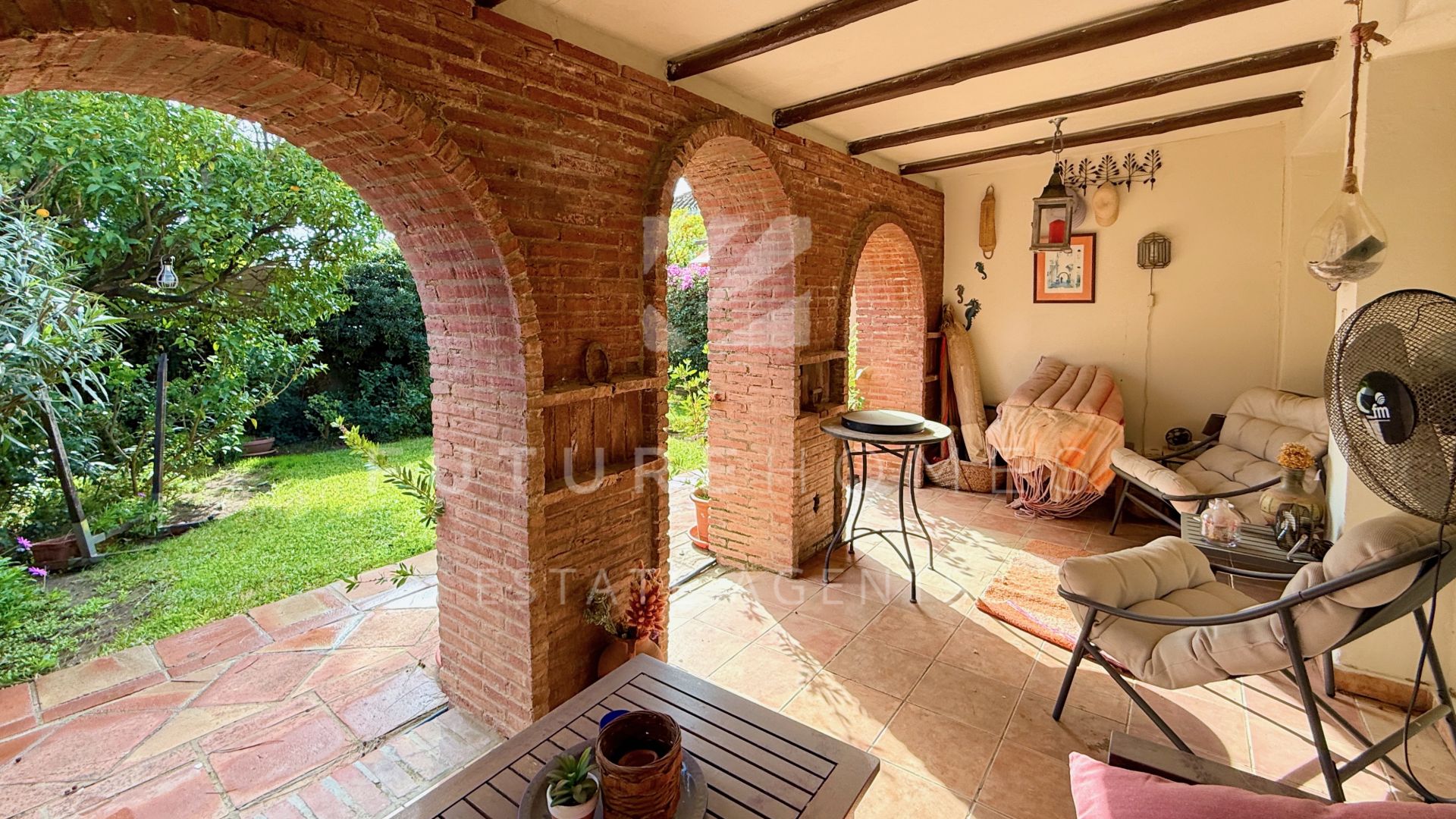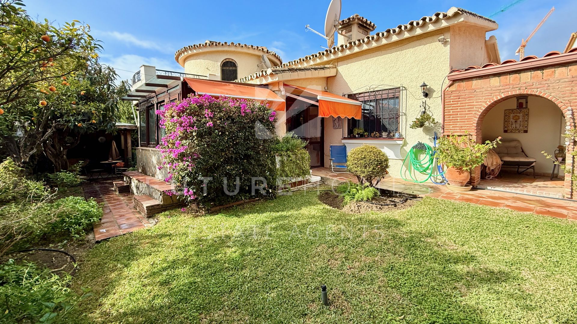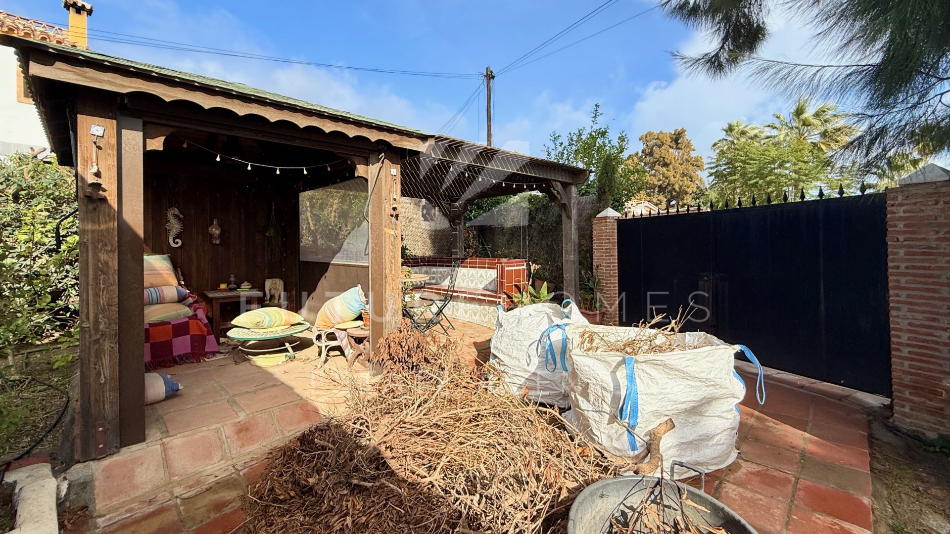 Fantastic opportunity! Set within the sought-after residential community of Don Pedro, this charming detached villa enjoys a superb location just a short stroll from the beach, with local transport nearby and Estepona town centre only a ten-minute drive away. The property sits on a generous 500m² plot and is distributed entirely on one level, offering comfortable and practical living. The villa features three bedrooms and two bathrooms, a fully fitted kitchen and a cozy living room with a traditional fireplace. A standout feature is the beautiful round Andalusian-style dining room which adds character and charm. The enclosed sun terrace provides a bright and versatile space, perfect for relaxing or entertaining year round. The garden is spacious and offers excellent potential, including the possibility to build a private swimming pool. Several outdoor seating areas make it easy to enjoy the Mediterranean climate and there is a private driveway on the property. An external spiral staircase leads to a solarium, where lovely sea views can be enjoyed. With its prime location, charming features and excellent potential, this villa represents a fantastic opportunity for a permanent residence, holiday home, or investment on the Costa del Sol. Do not hesitate to contact us to arrange a viewing, this property is sure to attract a high level of interest!