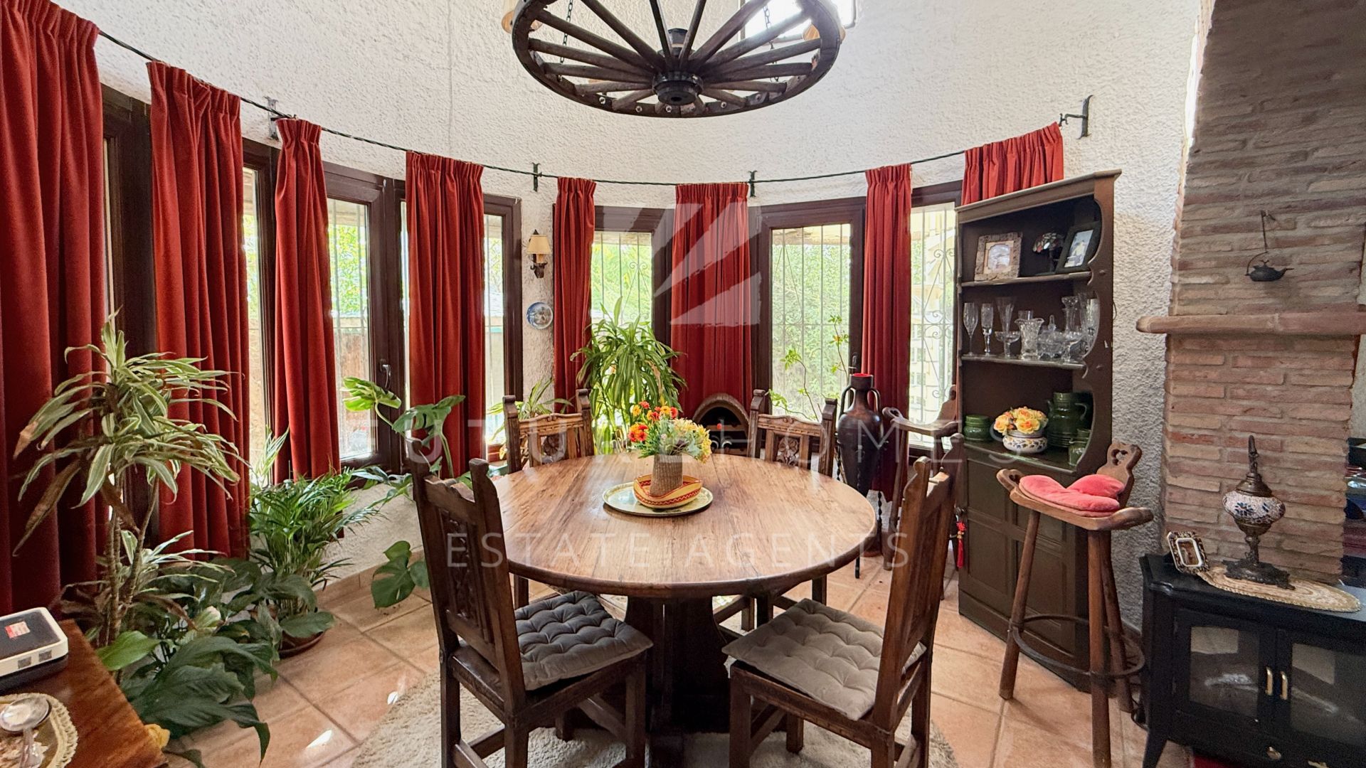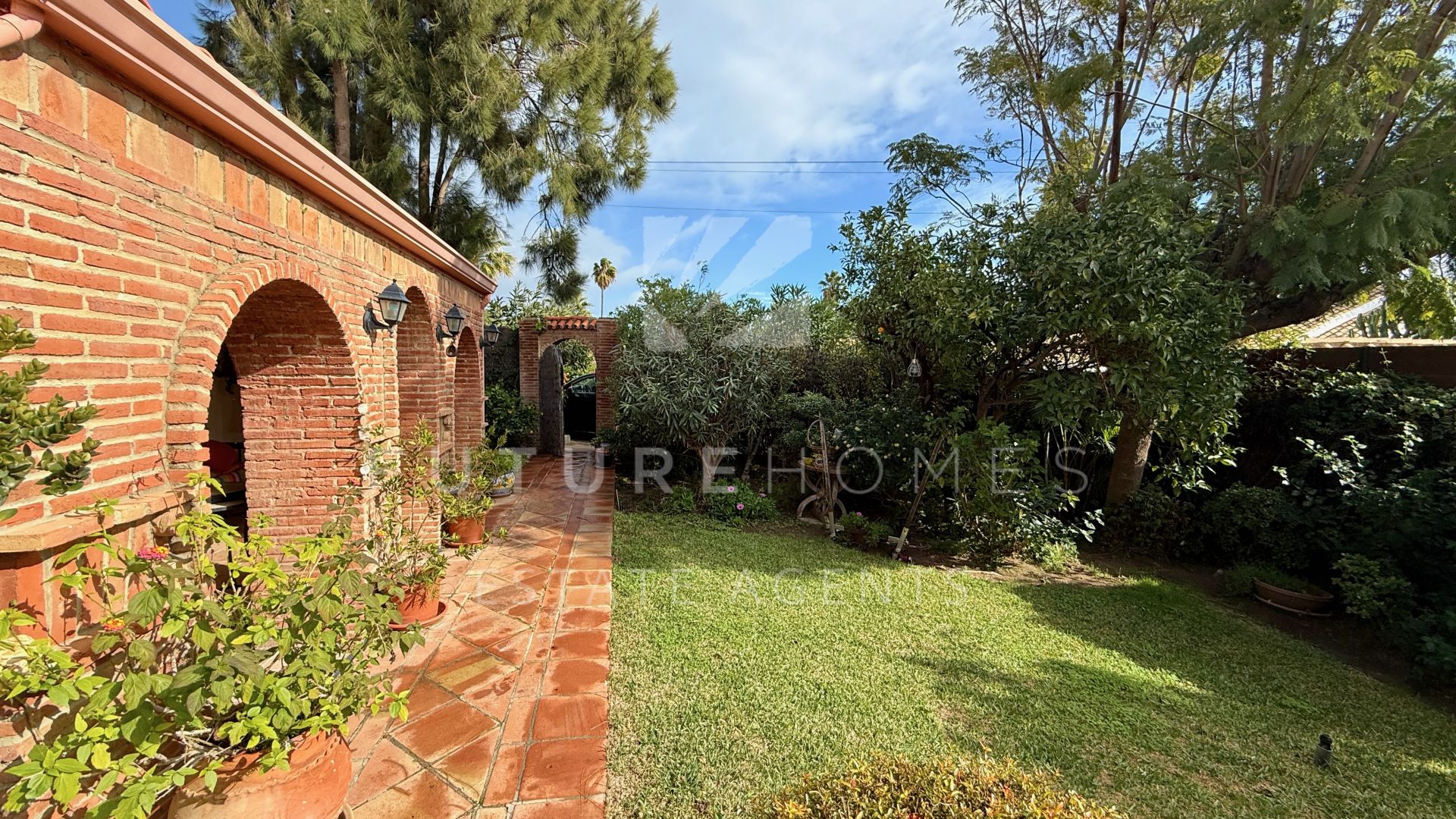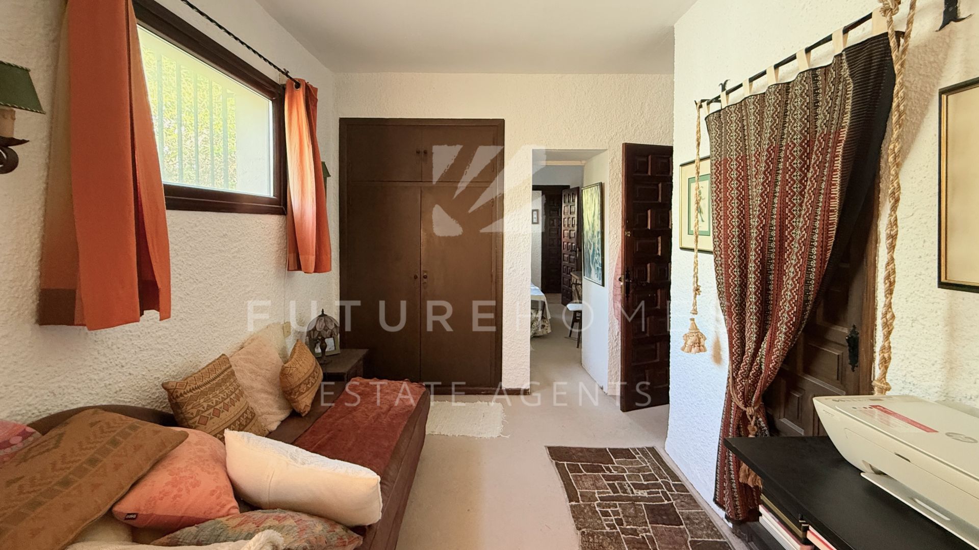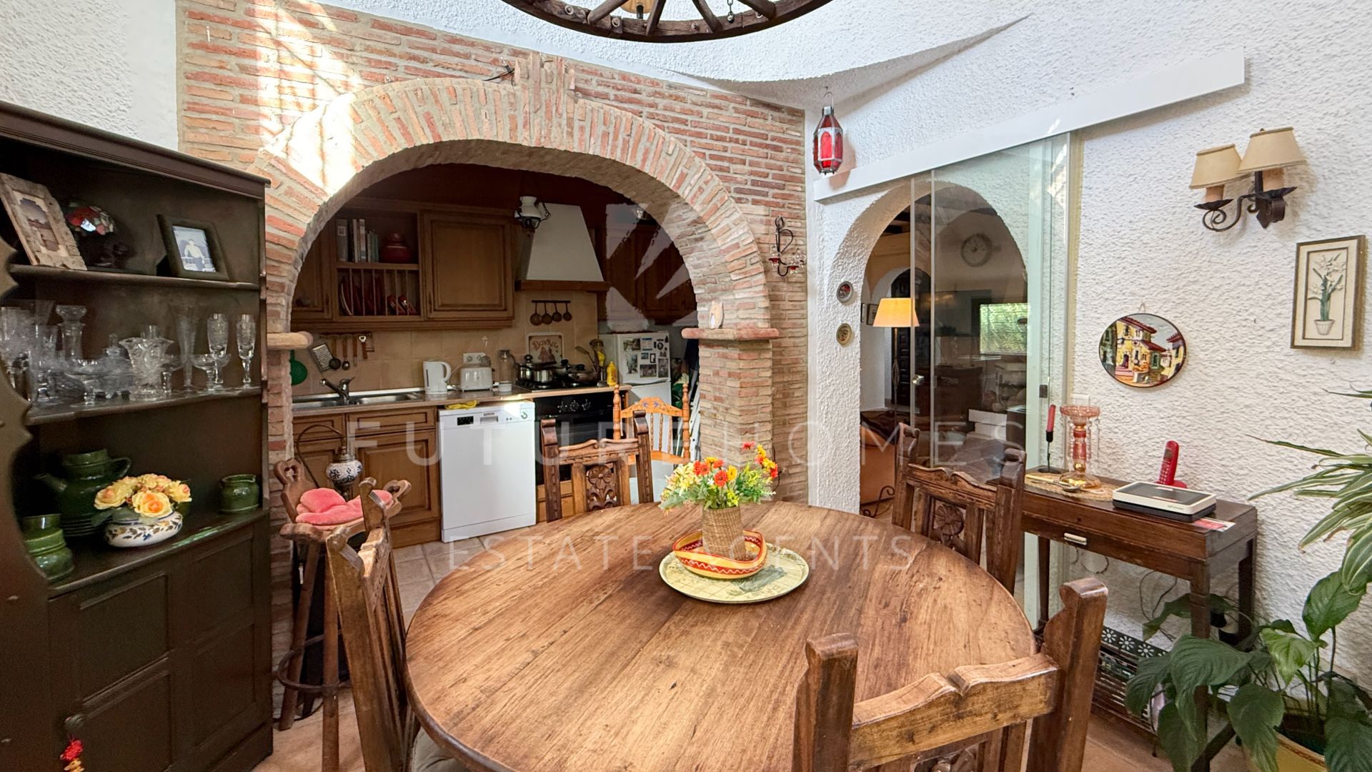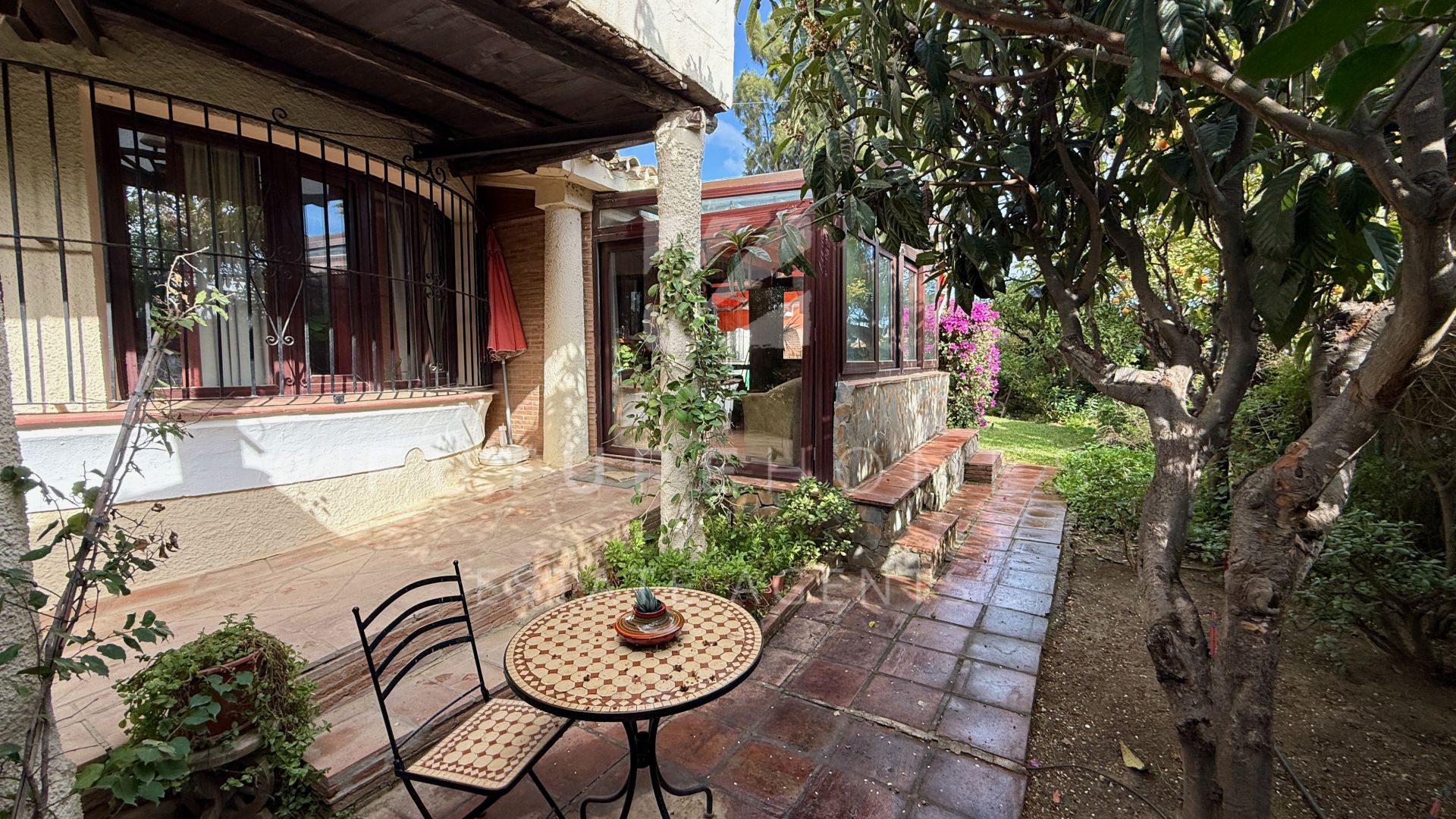 Fantastic opportunity! Set within the sought-after residential community of Don Pedro, this charming detached villa enjoys a superb location just a short stroll from the beach, with local transport nearby and Estepona town centre only a ten-minute drive away. The property sits on a generous 500m² plot and is distributed entirely on one level, offering comfortable and practical living. The villa features three bedrooms and two bathrooms, a fully fitted kitchen and a cozy living room with a traditional fireplace. A standout feature is the beautiful round Andalusian-style dining room which adds character and charm. The enclosed sun terrace provides a bright and versatile space, perfect for relaxing or entertaining year round. The garden is spacious and offers excellent potential, including the possibility to build a private swimming pool. Several outdoor seating areas make it easy to enjoy the Mediterranean climate and there is a private driveway on the property. An external spiral staircase leads to a solarium, where lovely sea views can be enjoyed. With its prime location, charming features and excellent potential, this villa represents a fantastic opportunity for a permanent residence, holiday home, or investment on the Costa del Sol. Do not hesitate to contact us to arrange a viewing, this property is sure to attract a high level of interest!