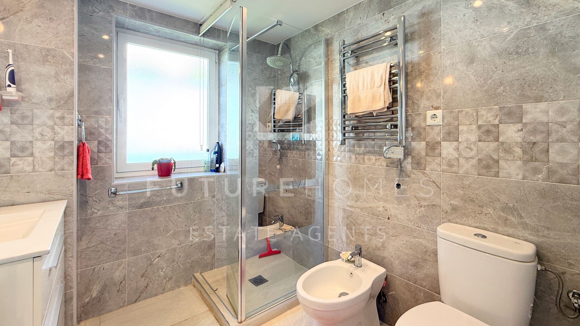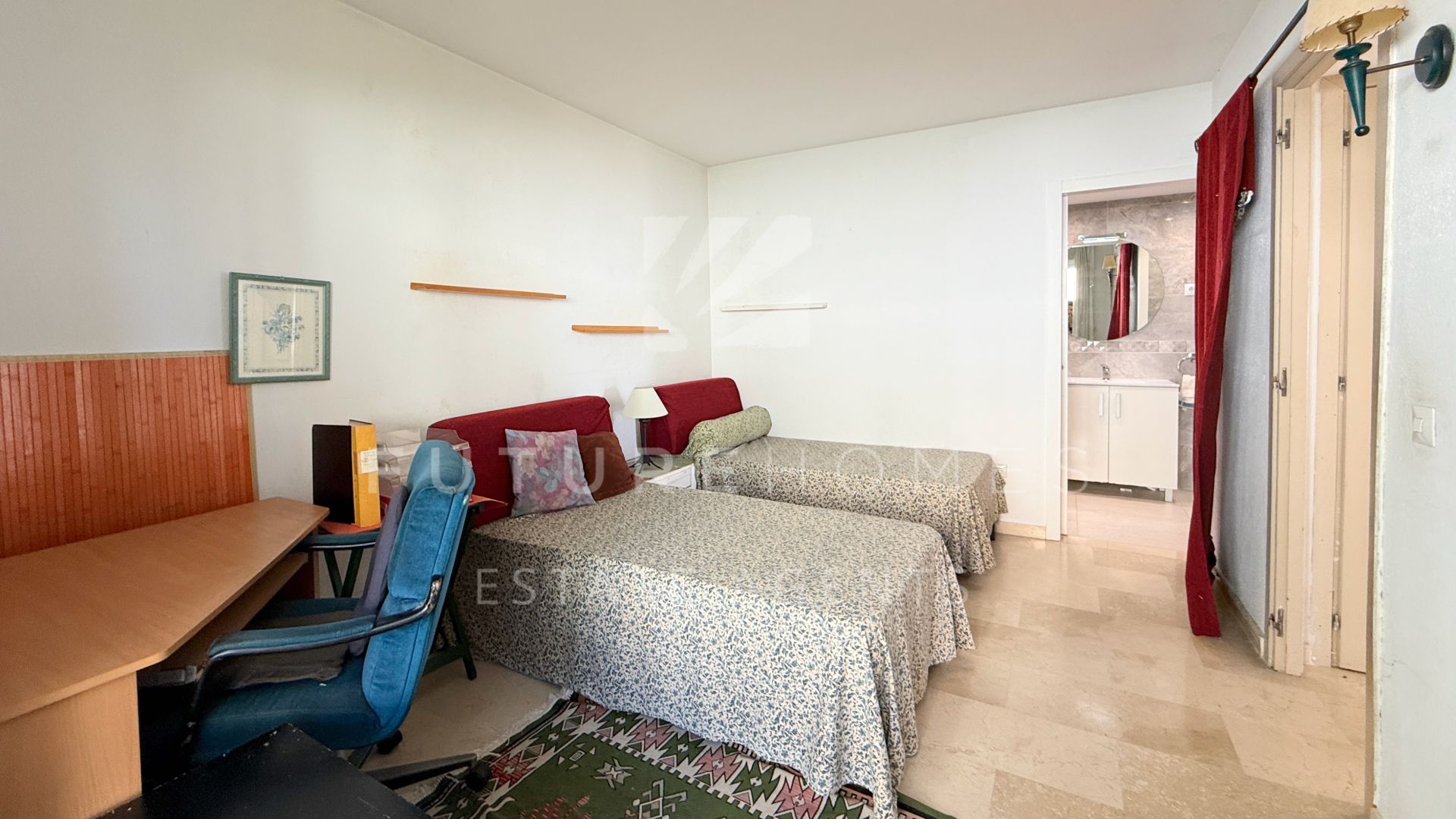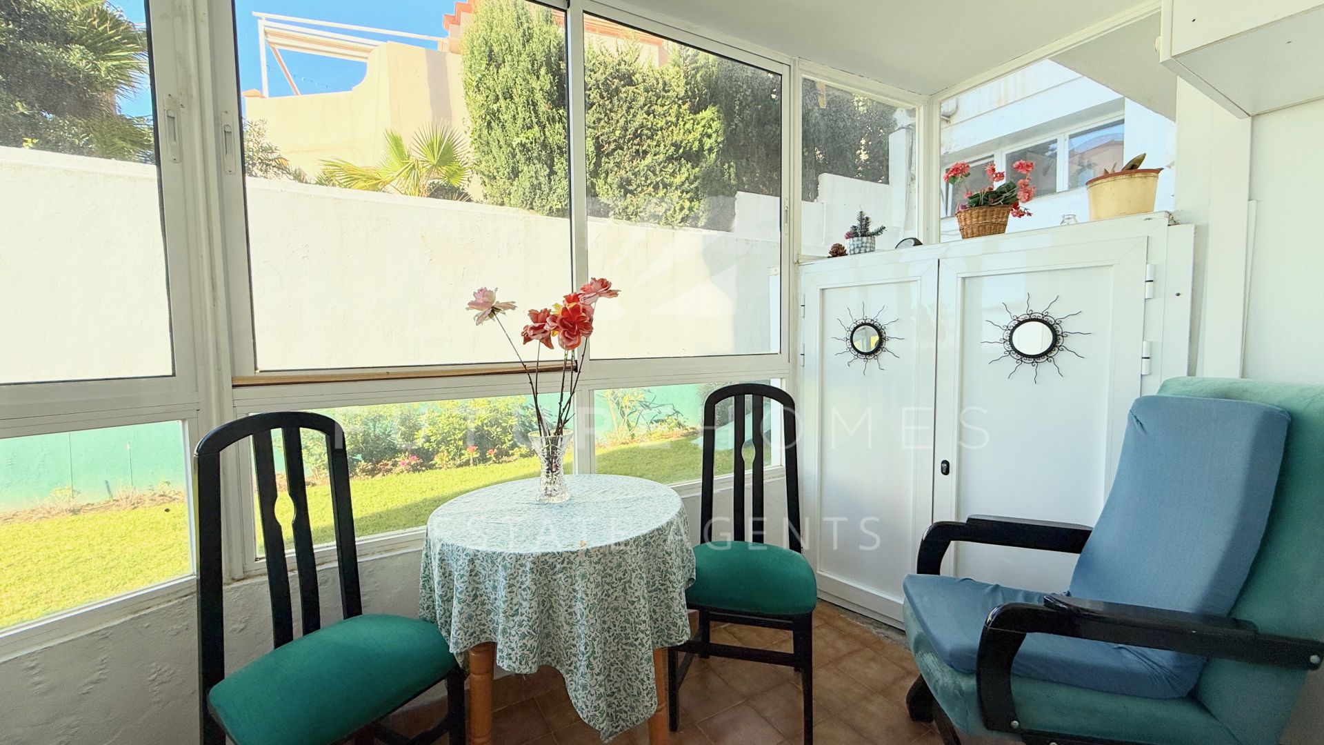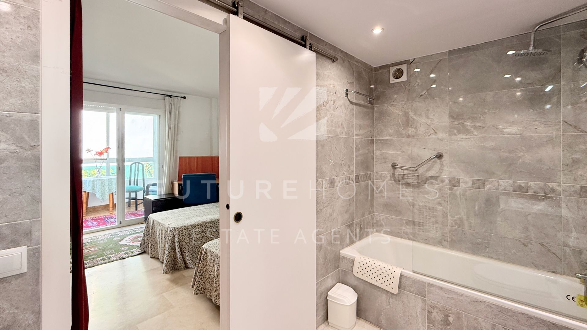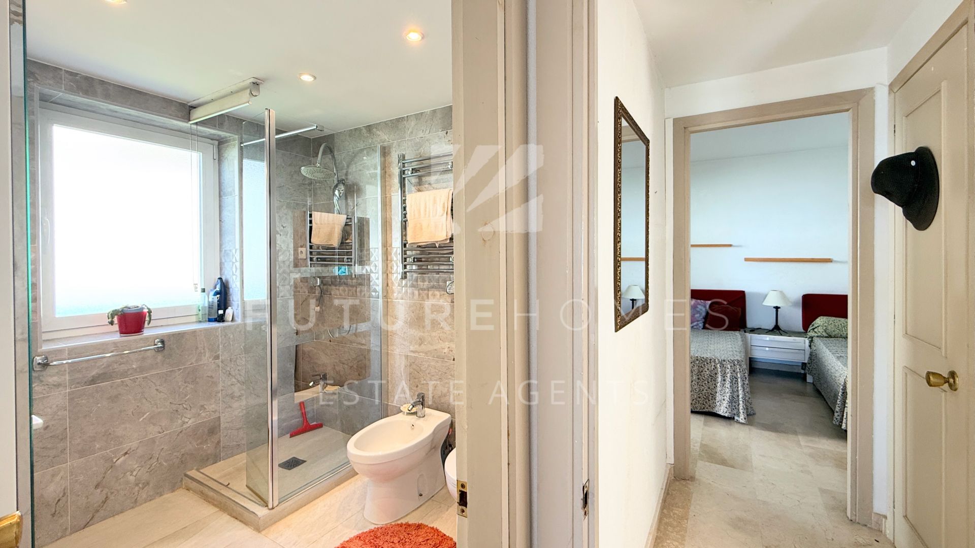 Exclusive listing – Located in the highly sought-after area of Estepona Marina, this south-facing ground floor apartment offers an exceptional opportunity to create your ideal home in one of the best positions on the Costa del Sol. The property features two generously sized bedrooms, each with its own modern en-suite bathroom. Both bedrooms enjoy direct access to private balconies with lovely sea views, allowing plenty of natural light to flood the interiors throughout the day. The semi open-plan kitchen (currently in need of renovation) overlooks the bright living area, creating a sociable layout with excellent potential. From the living room, you step out onto a good-sized terrace that overlooks the beautifully maintained communal gardens, with the marina and the Mediterranean sea providing a stunning backdrop. Included in the price is an underground parking space, adding both convenience and value. The community is well established and highly regarded, offering fantastic communal swimming pools and attractive green areas for residents to enjoy. Although the apartment would benefit from some updating, its unbeatable location makes it a standout investment. Within easy walking distance you will find the vibrant marina, the town centre, and the popular Playa del Cristo, making this an ideal permanent residence, holiday home, or rental opportunity. A rare chance to secure a prime property in an outstanding location with enormous potential.