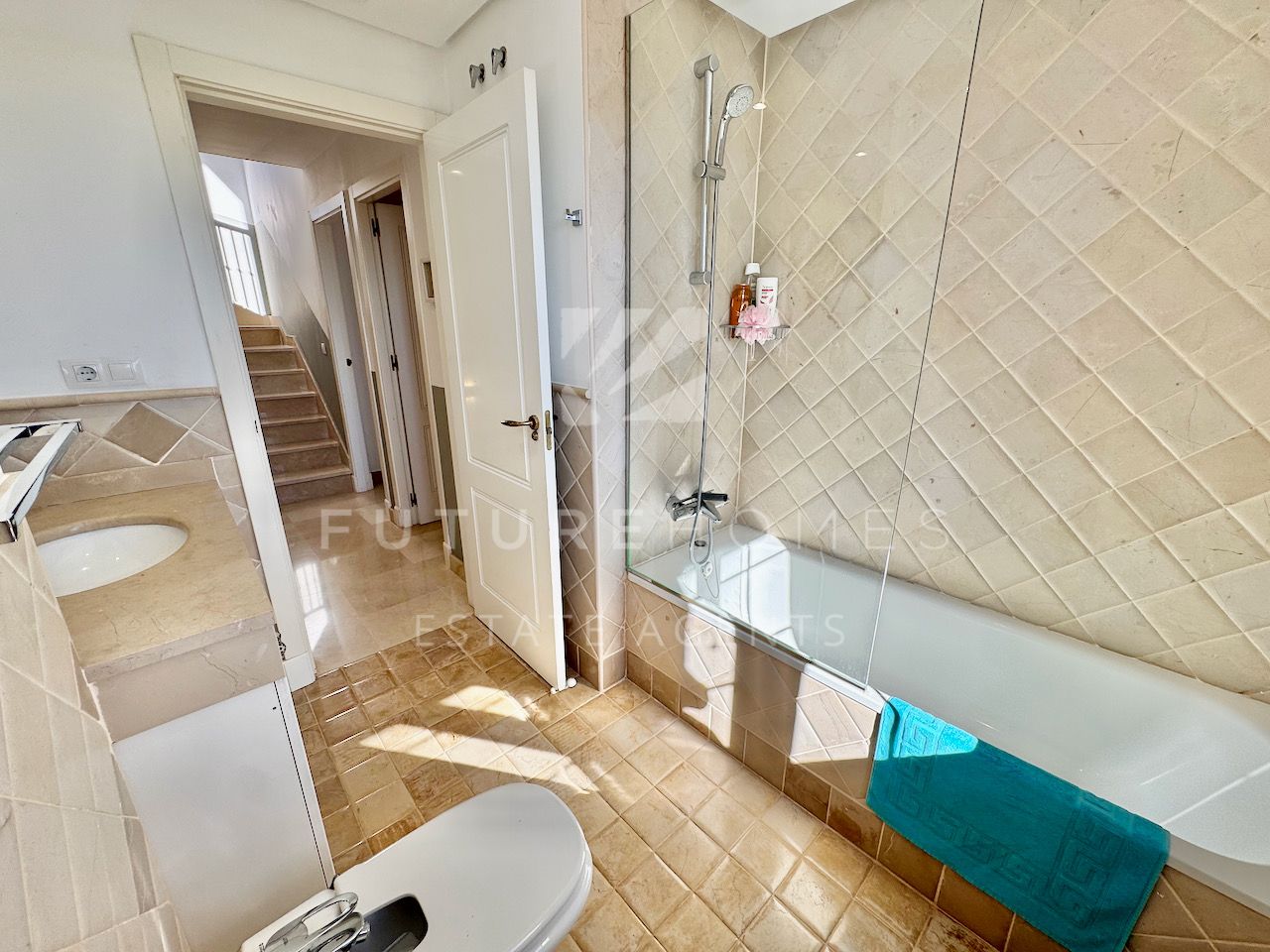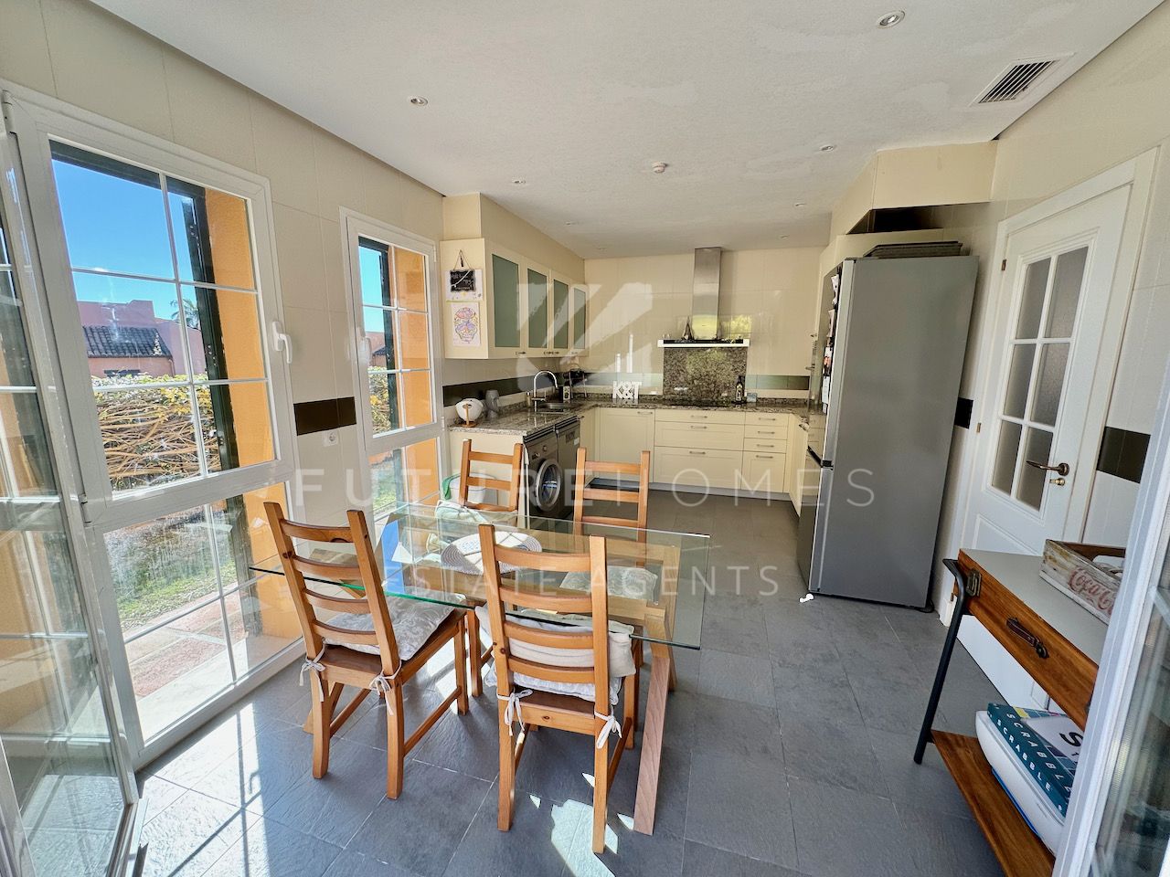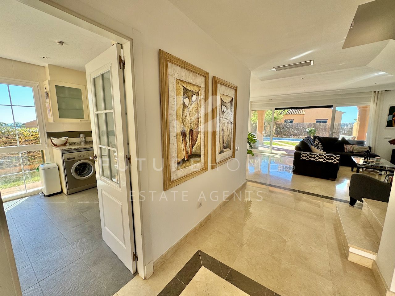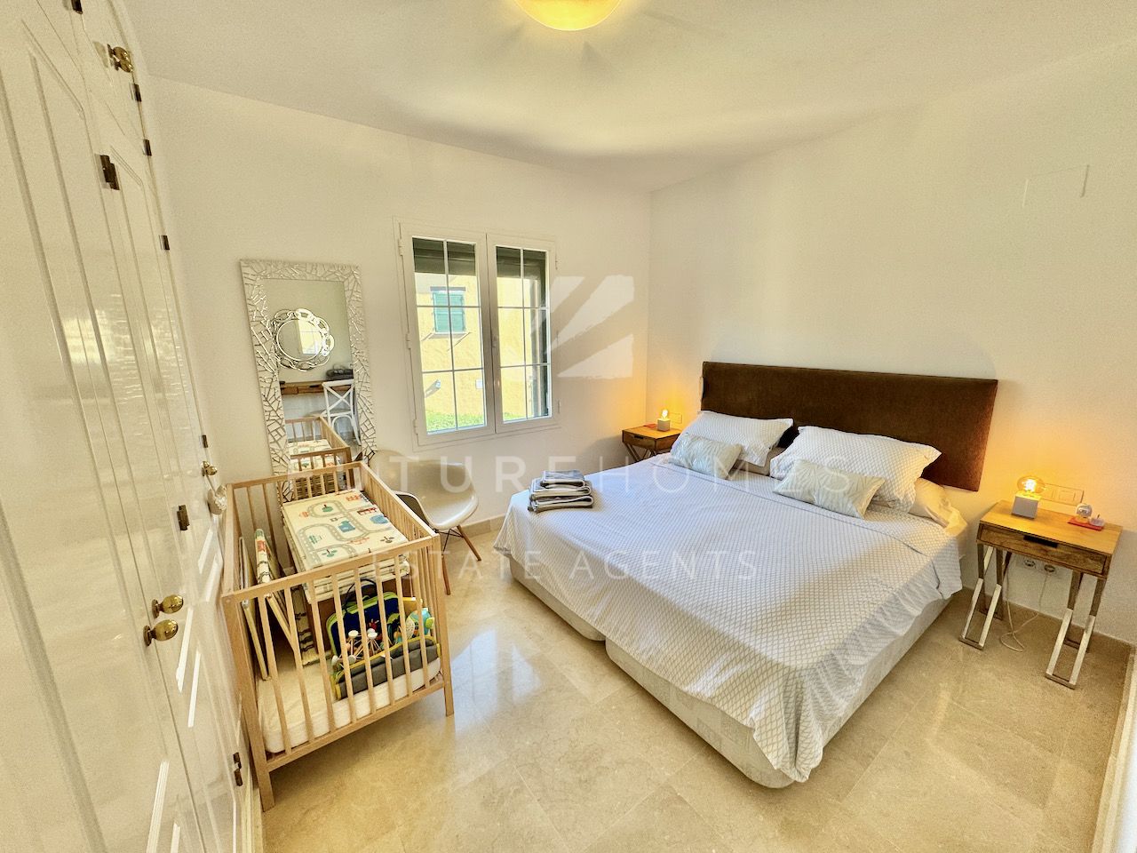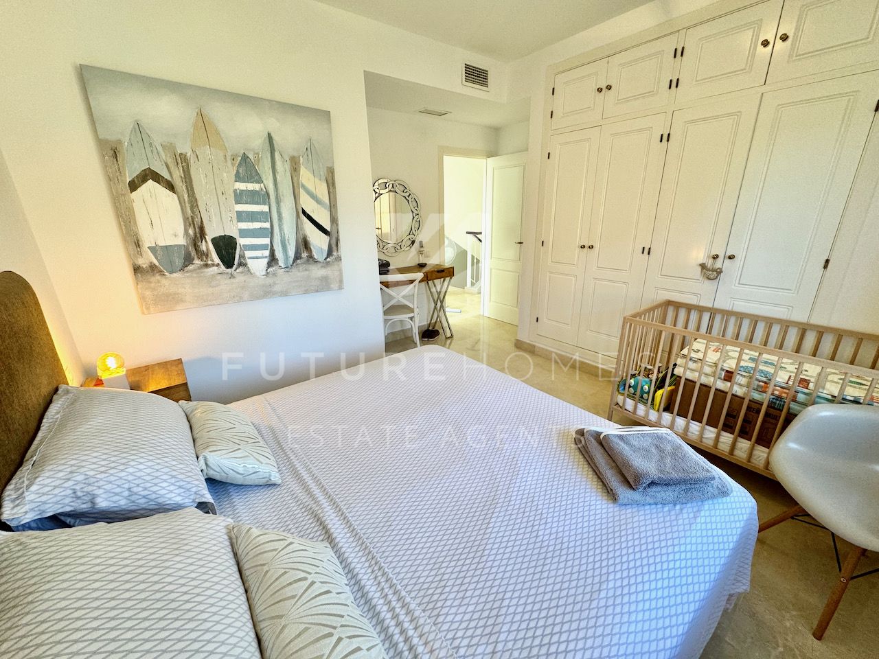 Superb semi detached townhouse for sale in one of the most demanded communities within Seghers, next to El Cristo beach and just less than a 10 minute walk from Estepona marina. Small residential urbanisation which is 100% occupied and lived in year round as permanent homes, these houses are in such demand that people knock on doors hoping owners will sell! This property is within the first phase of the community, one of just 8 semi detached houses and the only one with its very own private salt water swimming pool! As you enter, there is a very spacious reception area that leads onto a fully fitted modern kitchen with Siemens appliances and a lovely dining area within the kitchen itself, very practical indeed. On the same level there is a guest WC, storage cupboard and of course the large living / dining room with fireplace and large french doors opening onto the covered south facing terrace / garden area, ideal to enjoy the sunshine and a dip in the pool! On the first floor there are three double bedrooms, the master has a walk-in wardrobe and a very large bathroom with bath and separate shower, the balcony off the master bedroom has lovely open views. The two additional bedrooms share a family bathroom. The top level of the property has an amazing roof top terrace with incredible panoramic sea views and all day sun, an amazing space that is often converted into a fourth bedroom / home office. Private double carport with pergola roof. Two communal swimming pools. A fantastic property in an absolute prime location. Sure to sell quickly!!