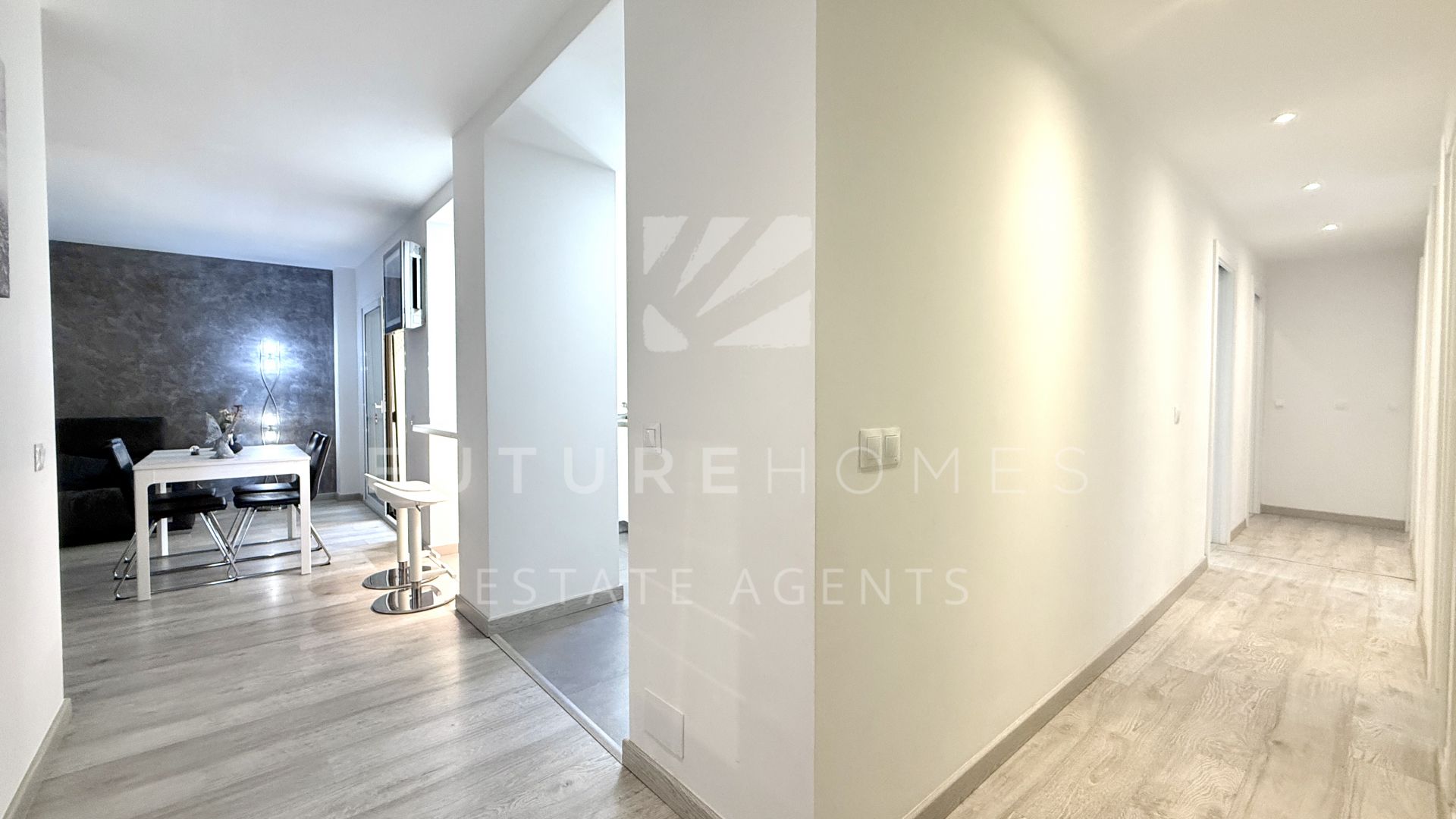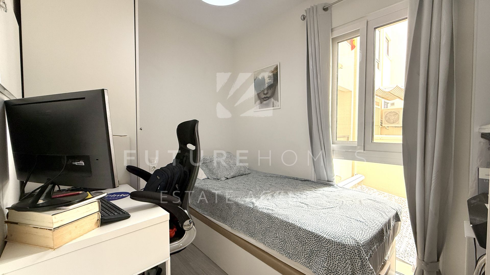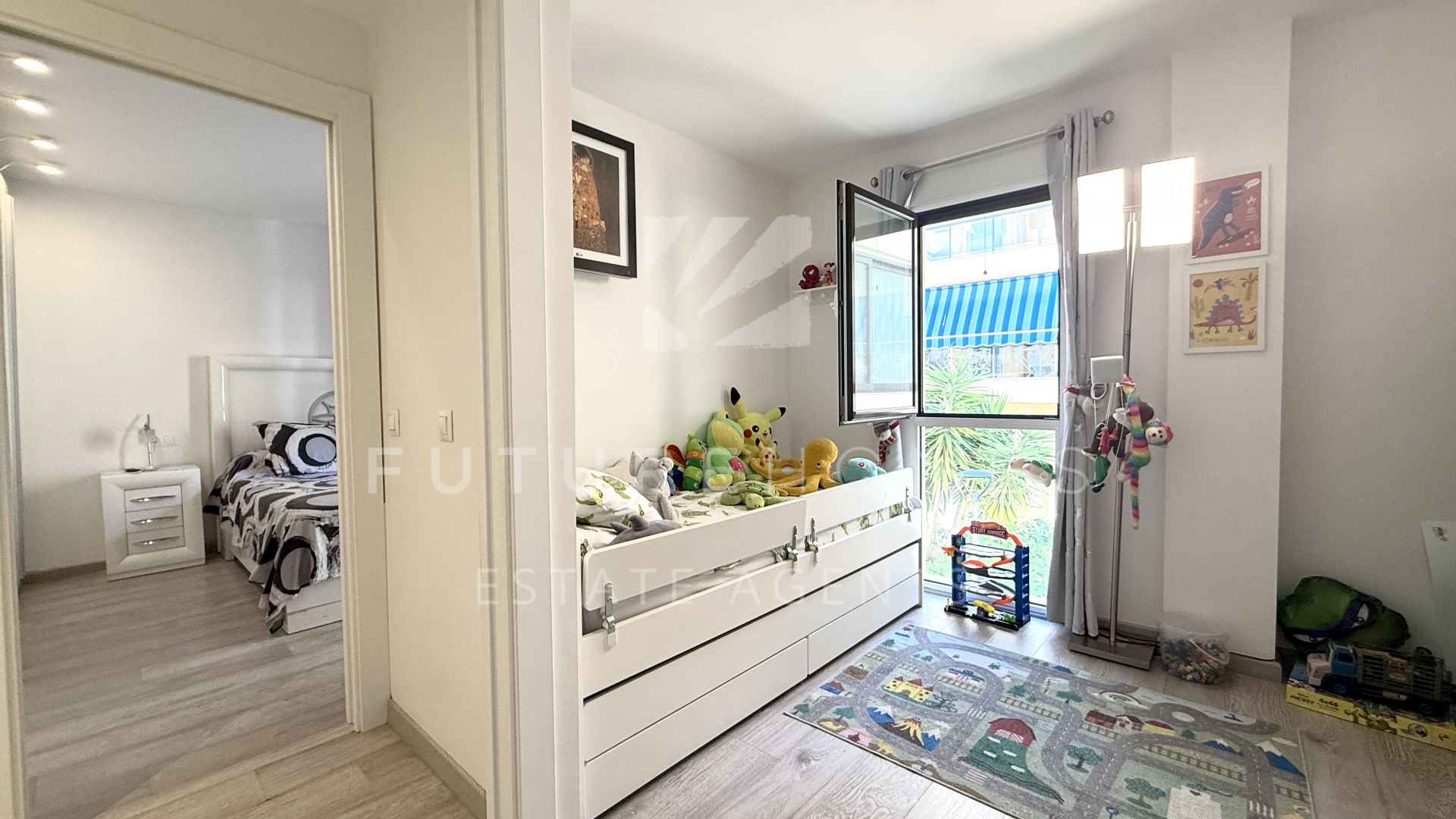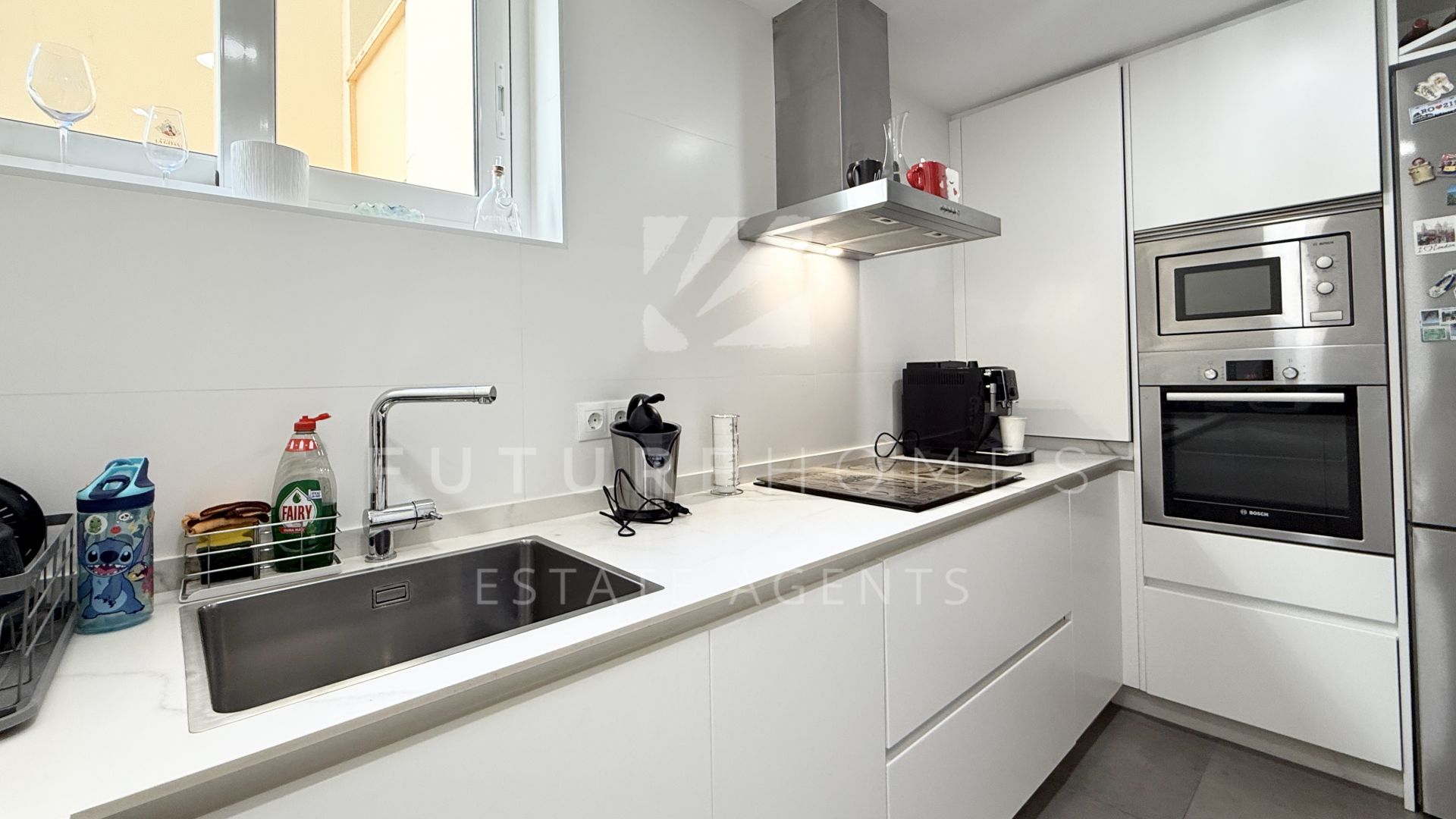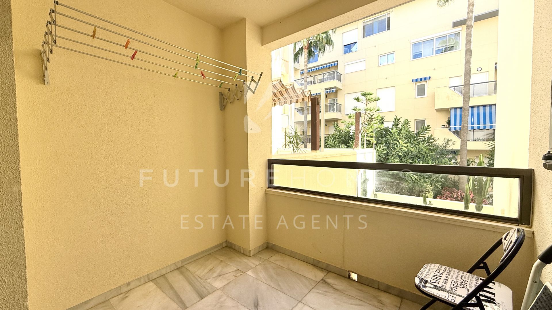 Este impecable apartamento ha sido recientemente reformado; es como un apartamento a estrenar. La comunidad de Veramar, en primera linea de playa, ocupa una de las mejores ubicaciones de Estepona: cuenta con aparcamiento dentro de la urbanización cerrada, jardines impecablemente cuidados y, lo mejor de todo, la piscina comunitaria con vistas a la Playa del Cristo, además de acceso directo no solo a la playa, sino también a la senda litoral. El apartamento cuenta con tres dormitorios: el principal es espacioso y cuenta con armarios empotrados nuevos de suelo a techo. Hay un dormitorio individual y otro con capacidad para una cama doble pequeña. Ambos baños cuentan con duchas de obra y uno de ellos tiene un amplio armario donde se encuentra la lavadora y la secadora. La cocina es fantástica, con muebles y encimeras de primera calidad, y está abierta al salón, que cuenta con puertas francesas que dan a la terraza privada, además de otras dos ventanas. Si bien la propiedad no ofrece vistas al mar, su ubicación es privilegiada y el apartamento ofrece una vida muy tranquila a pesar de su céntrica ubicación. Dispone de aire acondicionado y calefacción. Una propiedad excelente para vivir a tiempo completo o parcial. El puerto de Estepona está a diez minutos a pie y el centro de la ciudad está a solo 30 minutos a pie o menos en bicicleta. (Tenga en cuenta que esta propiedad no tiene licencia de alquiler turístico y la comunidad los ha prohibido, sin embargo, debido a esto, es una urbanización muy tranquila durante todo el año).