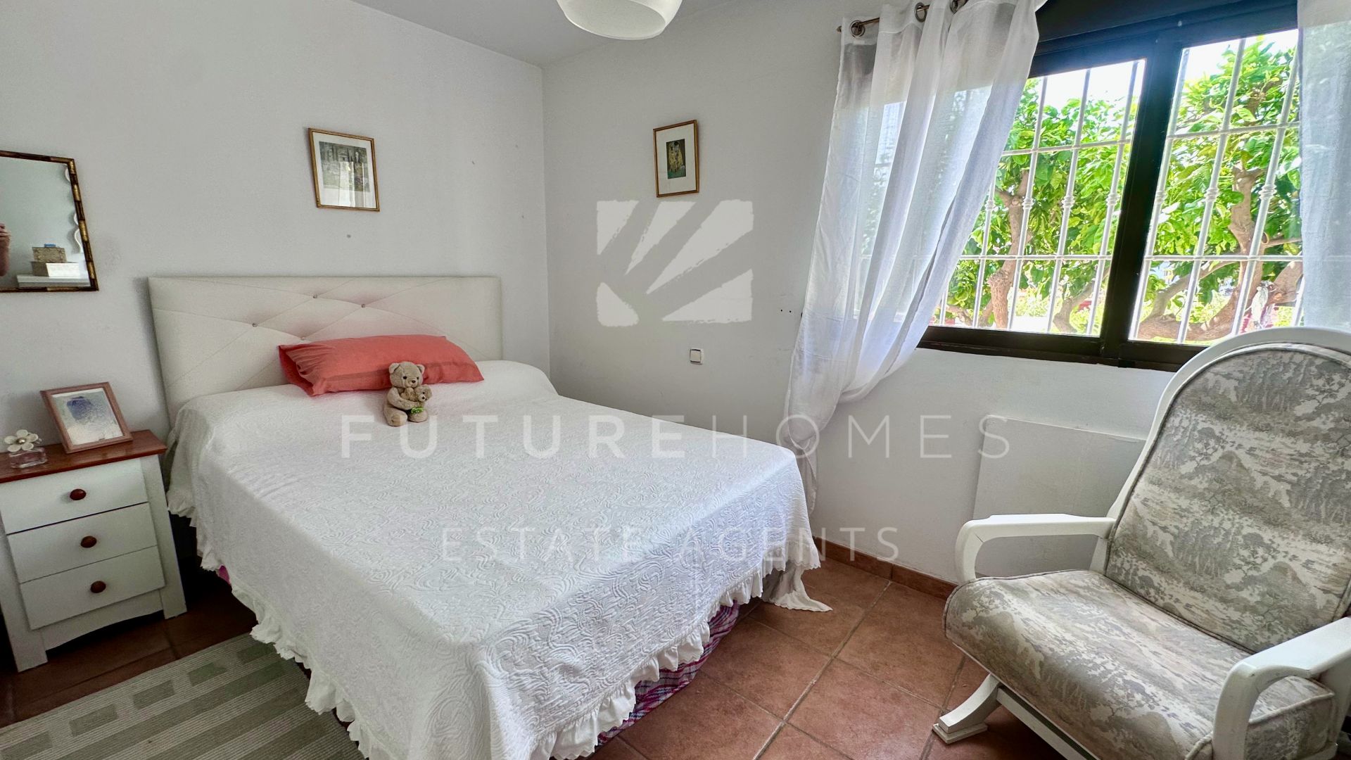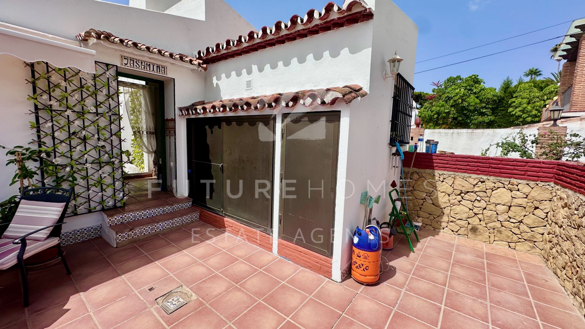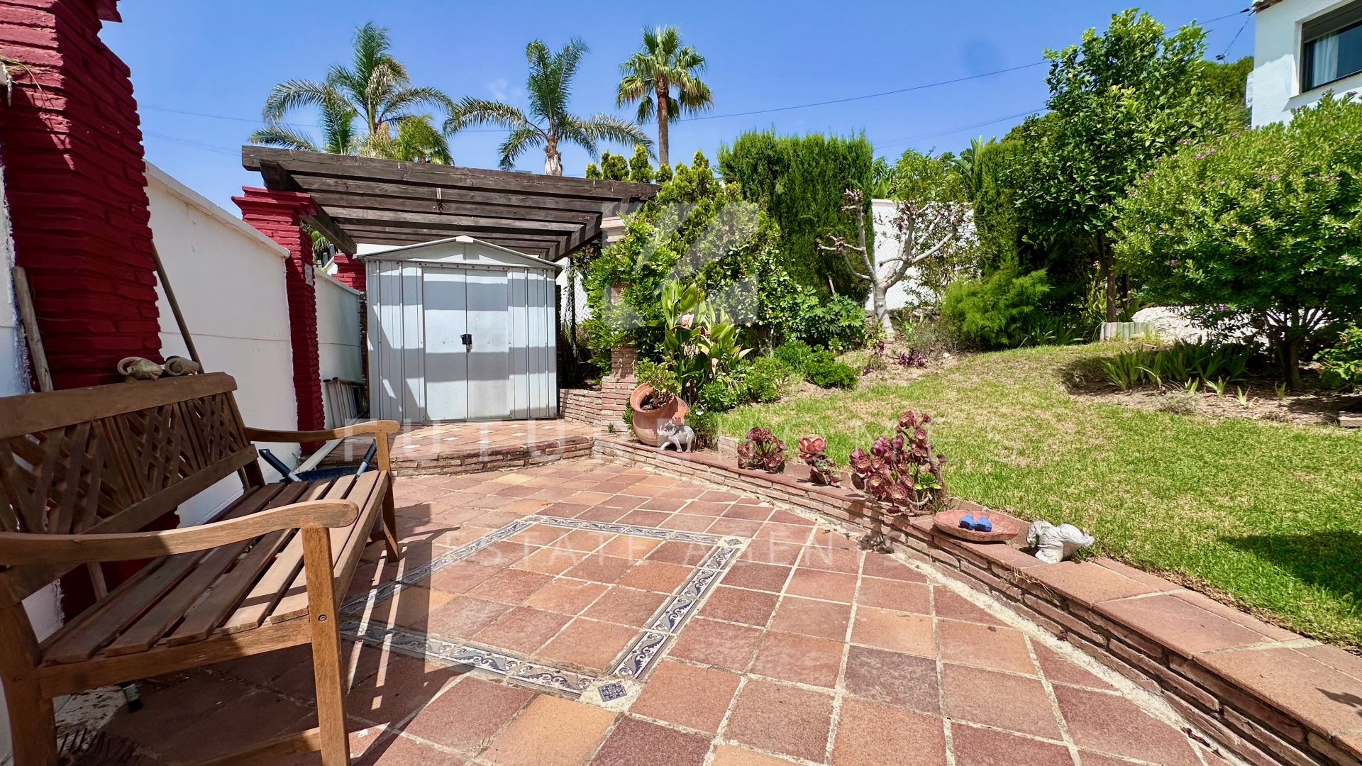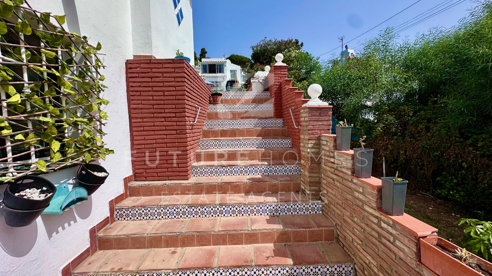 Esta encantadora casa adosada en Bahía de Casares combina privacidad, zonas verdes y preciosas vistas al mar. Dispone de amplios jardines y terrazas soleadas tanto en la parte delantera como en la trasera, perfectas para disfrutar del clima o recibir invitados. Su ubicación es ideal: a solo unos minutos de la A7 y de todos los servicios diarios y a pocos pasos de la playa. En la planta principal, un salón acogedor con chimenea se integra de forma natural con el comedor y la cocina abierta, y desde aquí se accede a una terraza espaciosa con vistas al mar. En el nivel inferior se encuentran dos dormitorios con armarios empotrados, uno de ellos con salida directa al jardín privado, además de un baño completo. La urbanización cuenta con una piscina comunitaria recientemente renovada, y la propiedad ofrece un acceso privado que permite aparcar varios vehículos, además de disponer de estacionamiento comunitario adicional. Una vivienda con encanto, vistas al mar y un gran potencial para disfrutar todo el año.