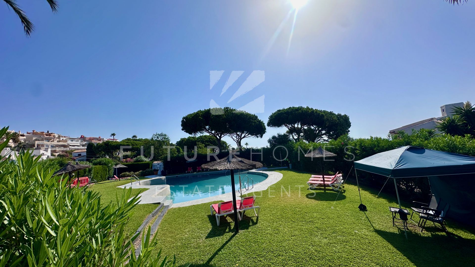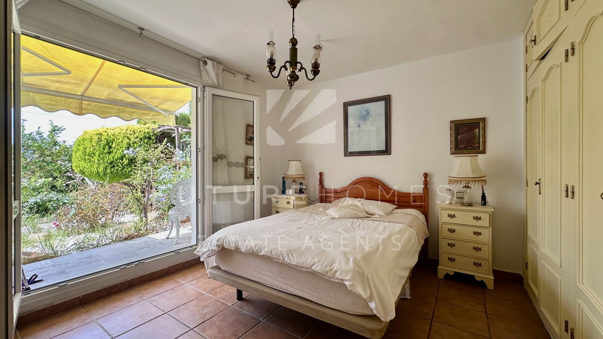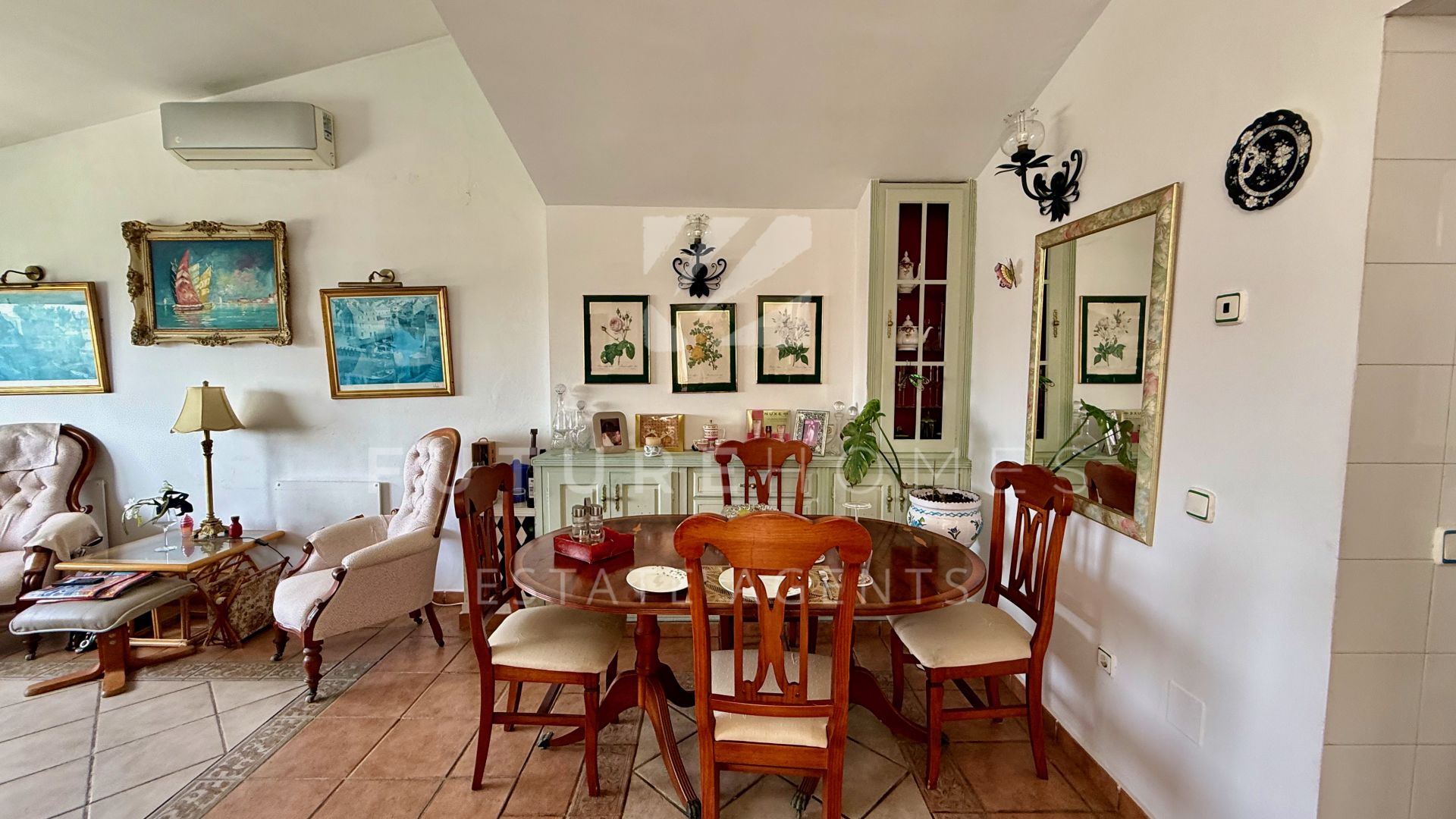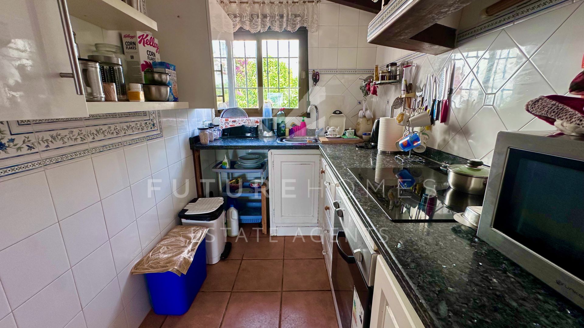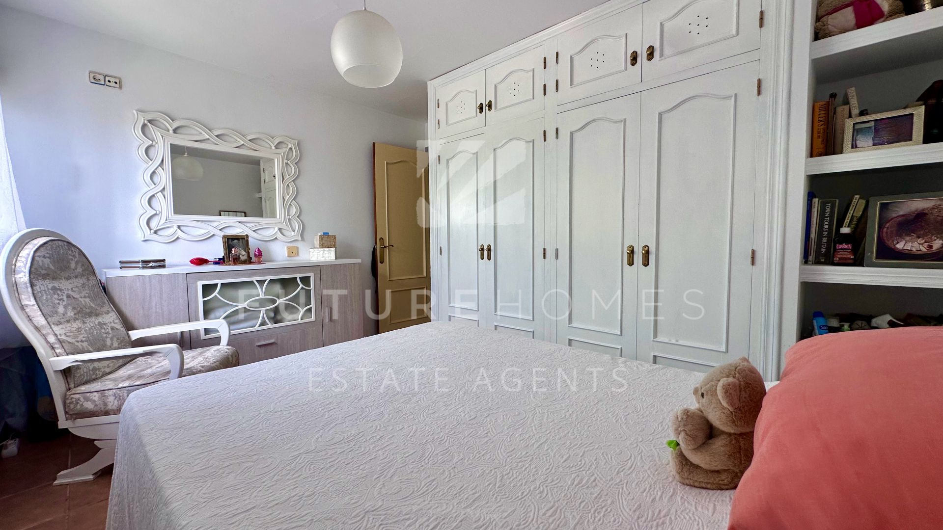 Esta encantadora casa adosada en Bahía de Casares combina privacidad, zonas verdes y preciosas vistas al mar. Dispone de amplios jardines y terrazas soleadas tanto en la parte delantera como en la trasera, perfectas para disfrutar del clima o recibir invitados. Su ubicación es ideal: a solo unos minutos de la A7 y de todos los servicios diarios y a pocos pasos de la playa. En la planta principal, un salón acogedor con chimenea se integra de forma natural con el comedor y la cocina abierta, y desde aquí se accede a una terraza espaciosa con vistas al mar. En el nivel inferior se encuentran dos dormitorios con armarios empotrados, uno de ellos con salida directa al jardín privado, además de un baño completo. La urbanización cuenta con una piscina comunitaria recientemente renovada, y la propiedad ofrece un acceso privado que permite aparcar varios vehículos, además de disponer de estacionamiento comunitario adicional. Una vivienda con encanto, vistas al mar y un gran potencial para disfrutar todo el año.